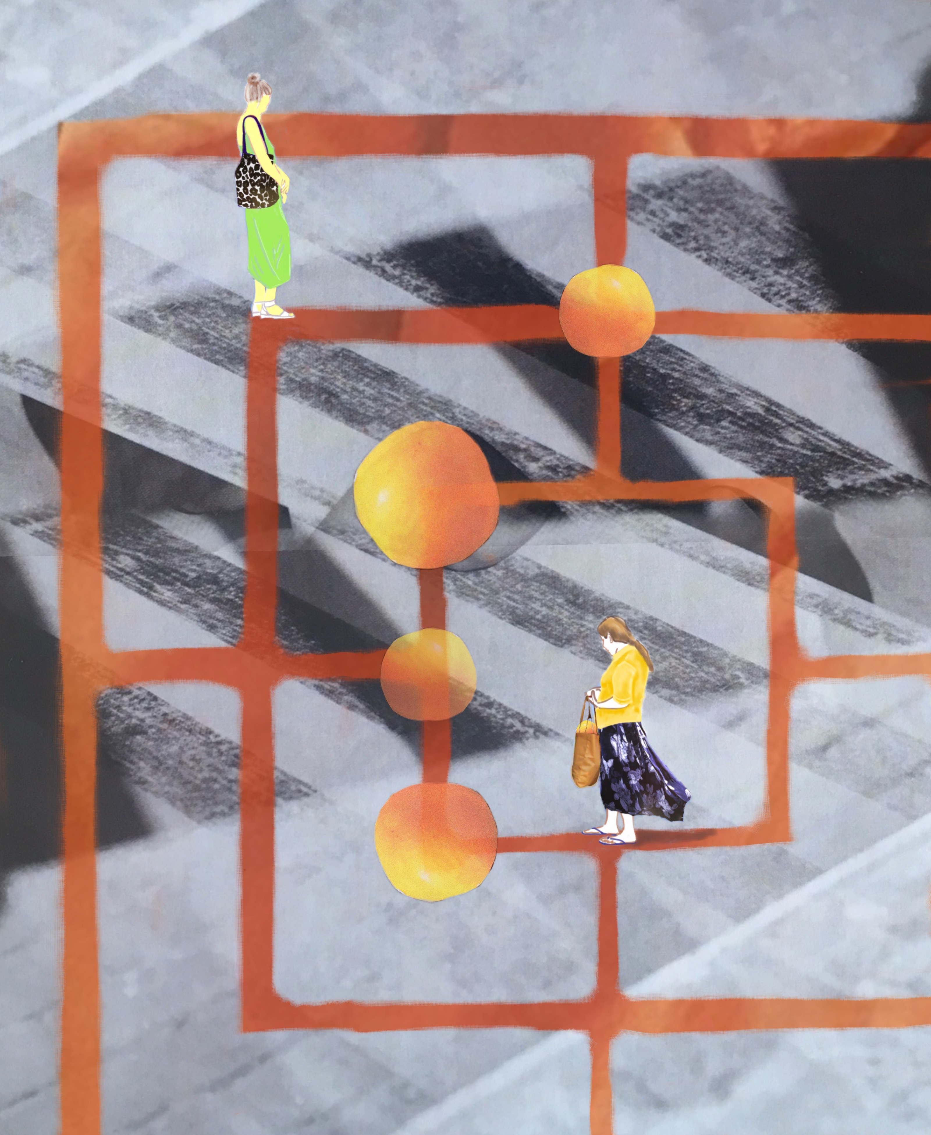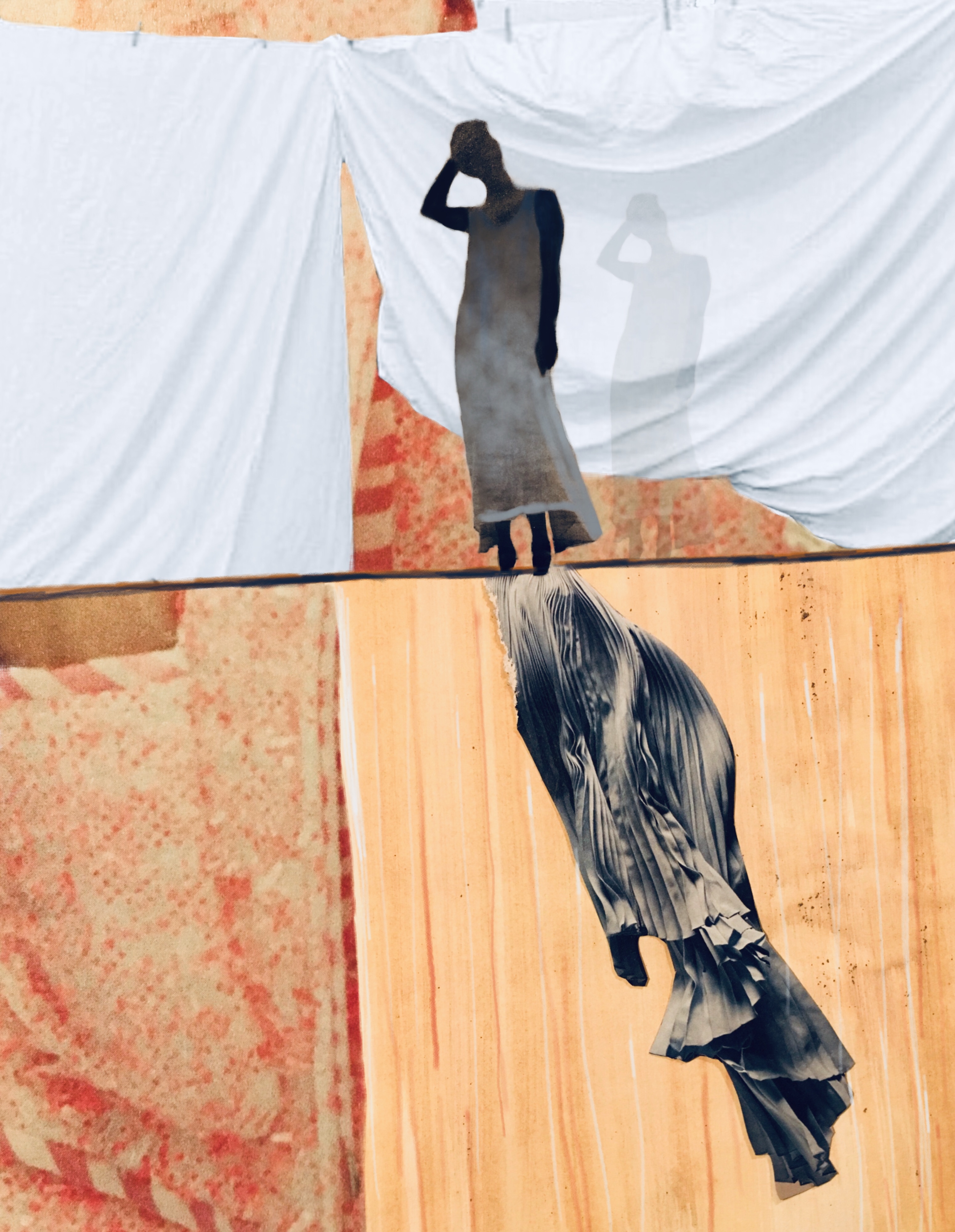 (Female) identity, how we fulfil different roles in our lives and how many versions of ourselves we can assume, are important topics in Carla Johanna´s work. In the theatre the reversal of roles happens with the help of costumes. She wants to investigate how different roles take shape in real life. Drawing from her previous work as a stage and costume designer, textiles, masks, lighting and set design are major elements in her collages.