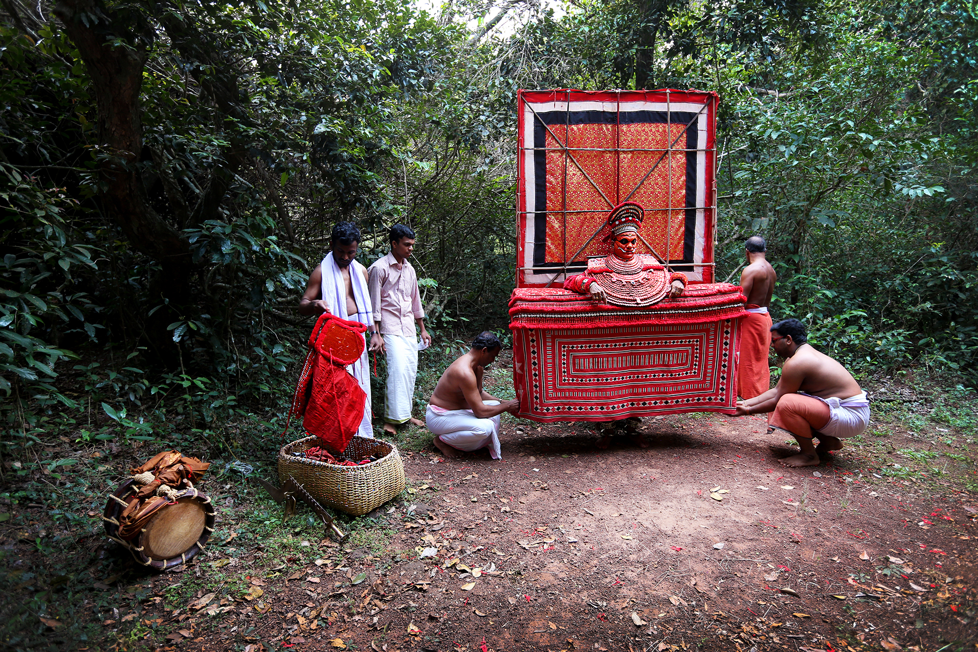 Theyyam is performed for various objectives, but the main intention is to bring prosperity and well-being to the village families. At the end of the dance the performers usually bless the devotees with handouts of ash. Devotees can directly approach, honour, and question a deity belonging to an extraordinary pantheon of divine beings, consisting not only of gods and goddesses but also of deified ancestors, warrior heroes, animals, ghosts, and spirits.
