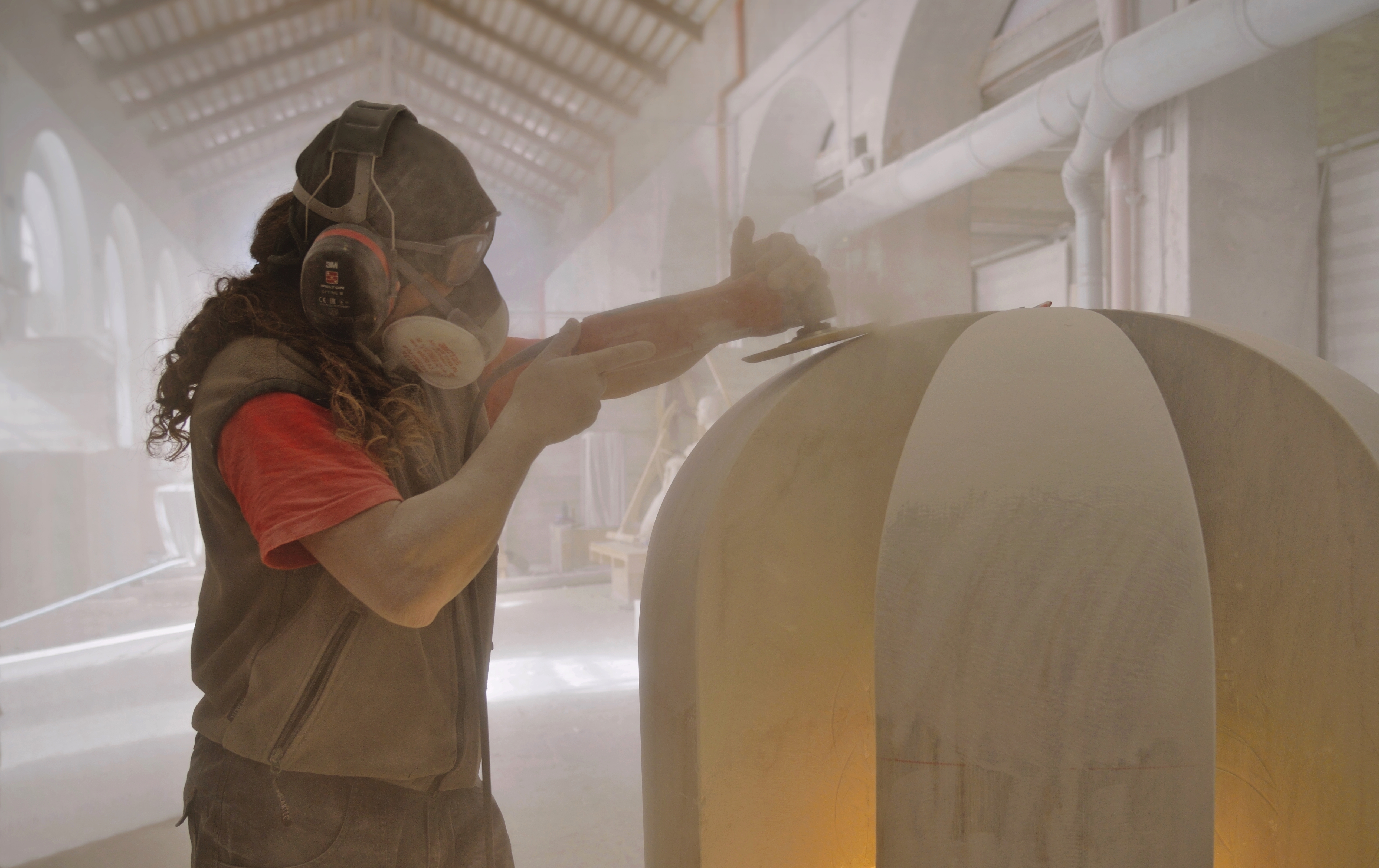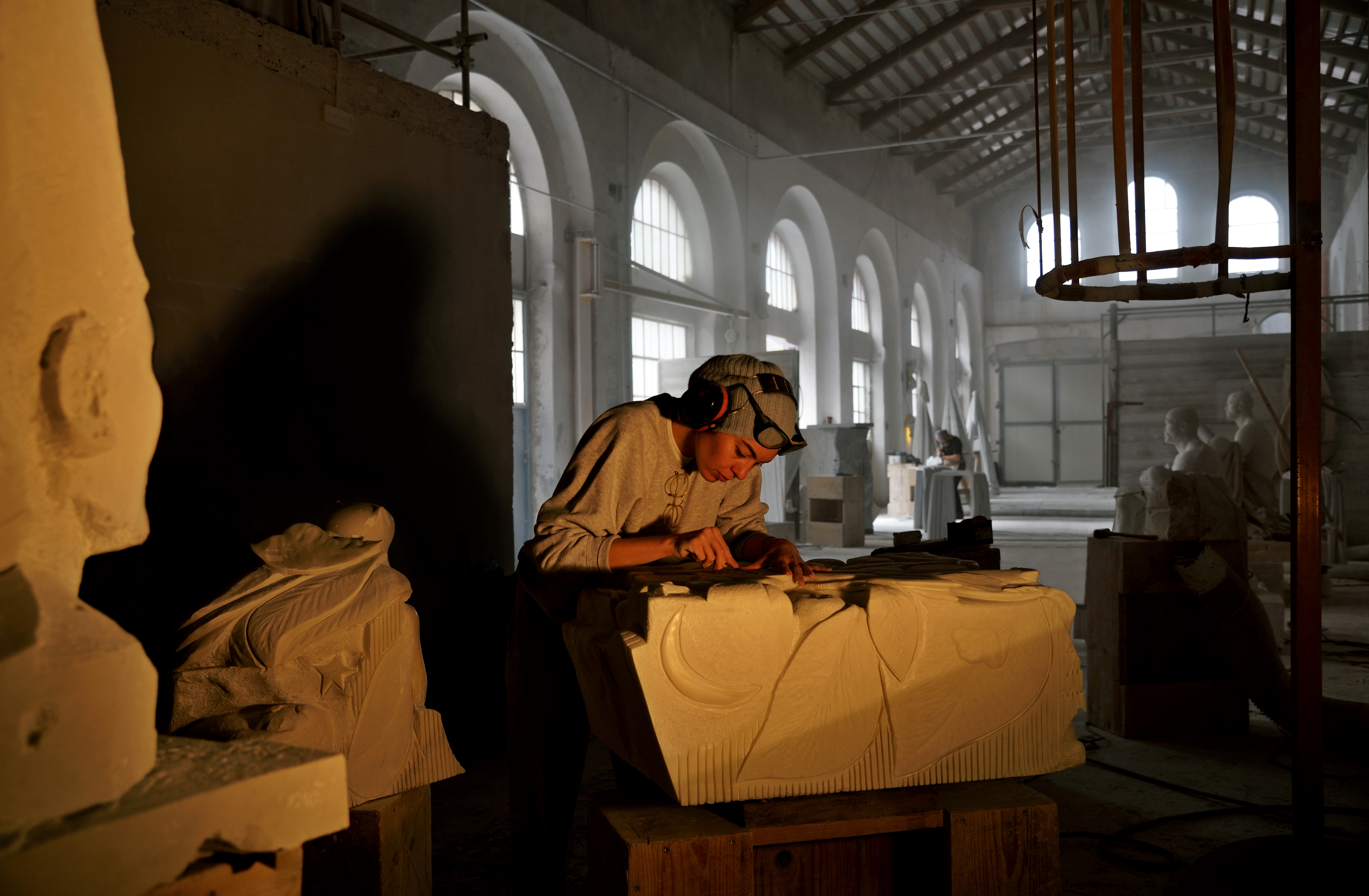 Simone takes special care to document the professional craftsmen and women of the area, in this way hoping to make his territory known and valued. He took these photos at the workshop of the Carrara Sculptors Cooperative (Cooperativa Scultori di Carrara), which was founded in December 2016 by a group of young sculptors with a vision, inside a historic building designed and built for marble manufacturing in 1864.