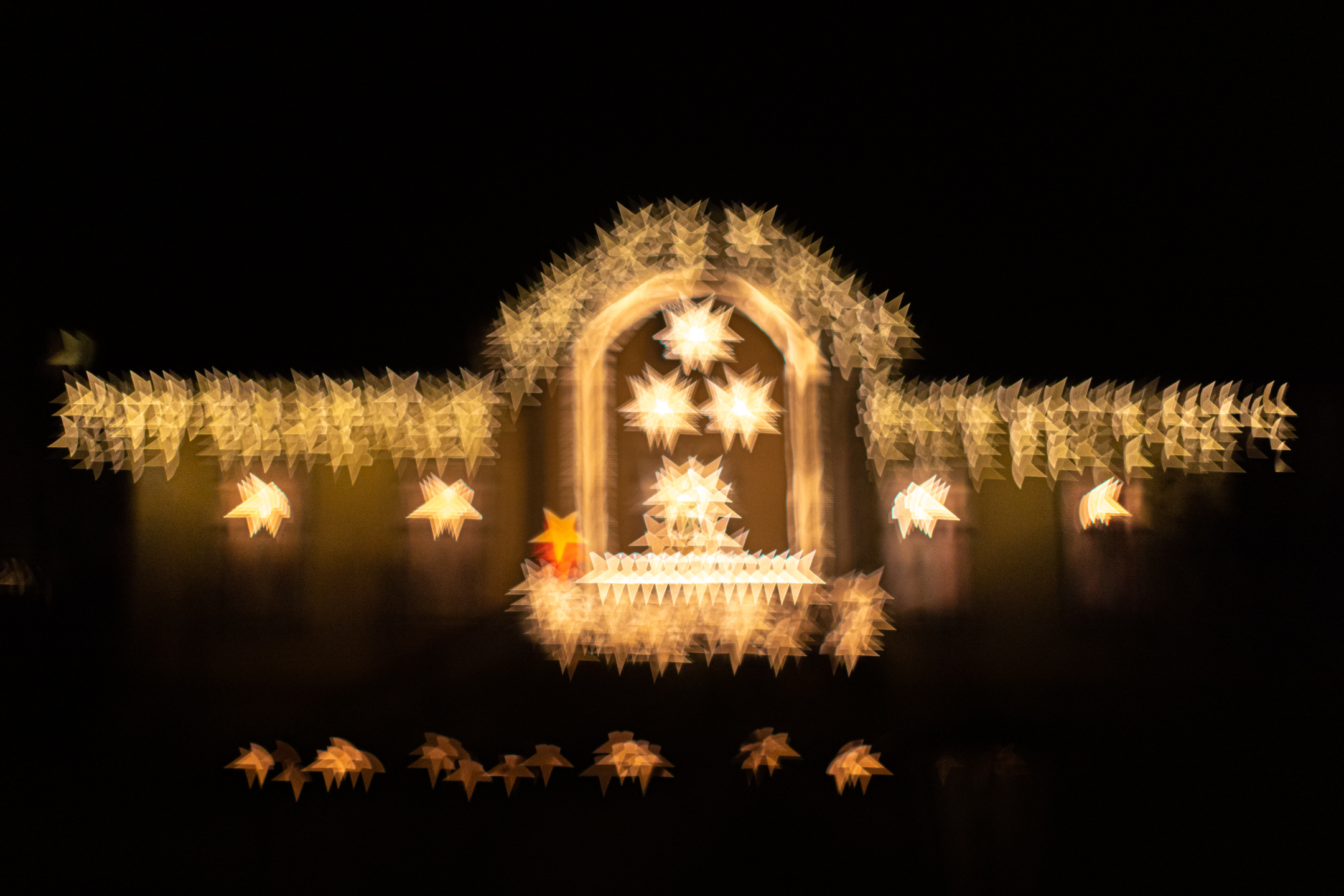 For these unusual shapes Assia fabricated a home-made “aperture”, something like a stencil, a simple paper circle with a cut-out in the middle, which she held in front of the camera lens. By doing this the unfocused lights take the shape of the “hole”, turning them into hearts, stars, or anything else that strikes the creator´s fancy. For some of this photo set she used intentional camera movement (ICM), a popular technique in experimental photography that can achieve interesting arty abstractions.