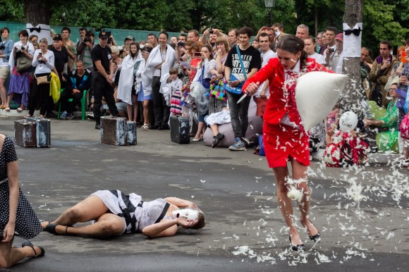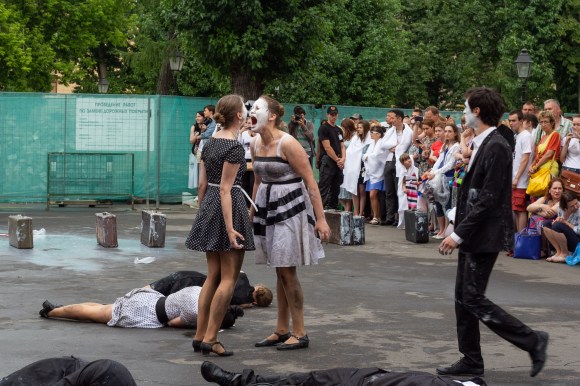 Street theatre has existed for as long as the theatre itself has existed, and this is one of the reasons that makes it so attractive – you seem to be connected with history and are filled with an energy that has been accumulating for centuries, Oleg says. Unfortunately, today, in times of Coronavirus restrictions, we are deprived of the opportunity to contemplate massive theatrical performances in our streets – but Oleg has shared with us something that allows us to remember and relive an amazing performance he saw during a street theatre festival in Moscow in 2014.