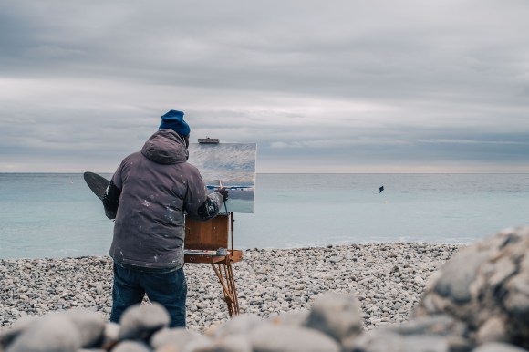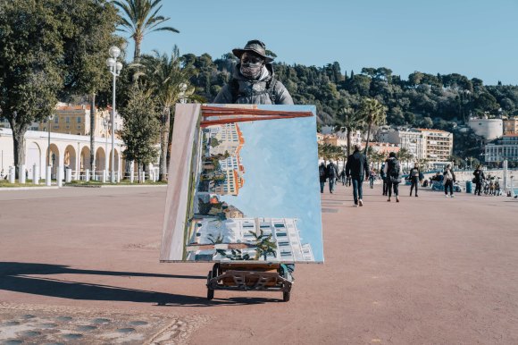 Things are a little less glamourous for Omar for the time being. The material has a cost and the art market is not doing very well with the Covid-19 pandemic shaking up the world. Although Omar’s work has been exhibited in prestigious galleries like the Círculo de Bellas Artes in Madrid, art has a price that not many can afford right now. Omar regularly sells some of his smaller paintings on the Monday flea and antiques market on Cours Saleya in Nice. He has even had to deal with a fine for purportedly “obstructing” the promenade with his easel. “But,” he says, “that doesn’t stop me from painting on the Promenade. People often stop by to watch or chat. And a fine doesn’t stop the sun from shining.”