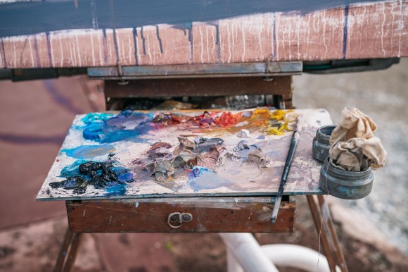 Illustrious artists before him have followed the call of light to Nice – Marc Chagall, Henri Matisse, Raoul Dufy or Paul Signac. Edvard Munch, best known for The Scream (1893), also experienced lighter moments in Nice, painting Night in Nice in 1891 – actually the painter’s first work to be exhibited in a museum. Matisse praised “the tender, mellow if sometimes dazzling light” of Nice (letter to Charles Camoin, 1918). Omar prepares his own canvas and gets his oil paints from a boutique that already supplied Renoir, Matisse, Picasso and Chagall – Peintures Franco, founded in 1900.