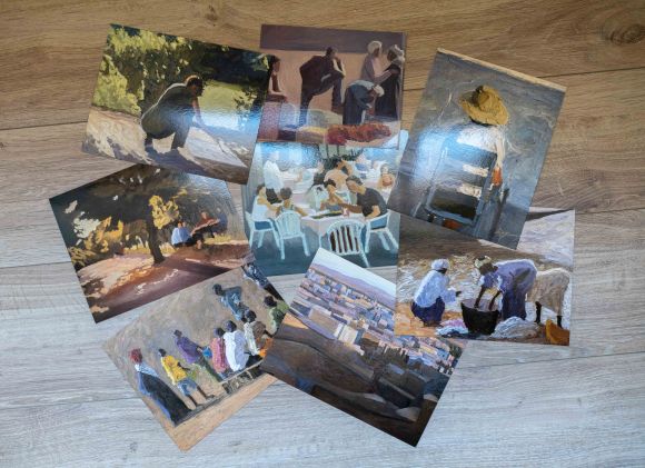 Like Annette, Omar loves the Mediterranean light and blue hues of the Southern French Riviera. What Annette captures in her photographs, Omar tries to show in his paintings. Omar was born in Juba, into a Sudanese artistic family of sculptors. “Nobody could live off art in Sudan back then, but art was and is an integral part of life. The strict divide between art by profession or passion, or the distinction between art and craft do not really make sense in the culture I grew up in. The quest of aestheticism and the pleasure of transforming any kind of material into beauty endowed with meaning are an integral part of life,” he told Annette. Teachers at secondary school spotted and nurtured Omar´s artistic talent. He ended up moving from Khartoum to study fine art at the National Institute of Fine Arts in Tetouan, Morocco. When the Sudan became embroiled in a civil war, Omar left and obtained asylum in Spain, where he also founded a family and eventually became a Spanish citizen. Omar often lapses into Spanish to talk about la pintura and luz and the difficulty to paint verde (green) whereas azul (blue) has all his favour.