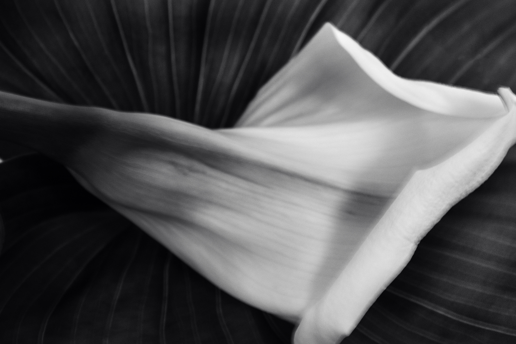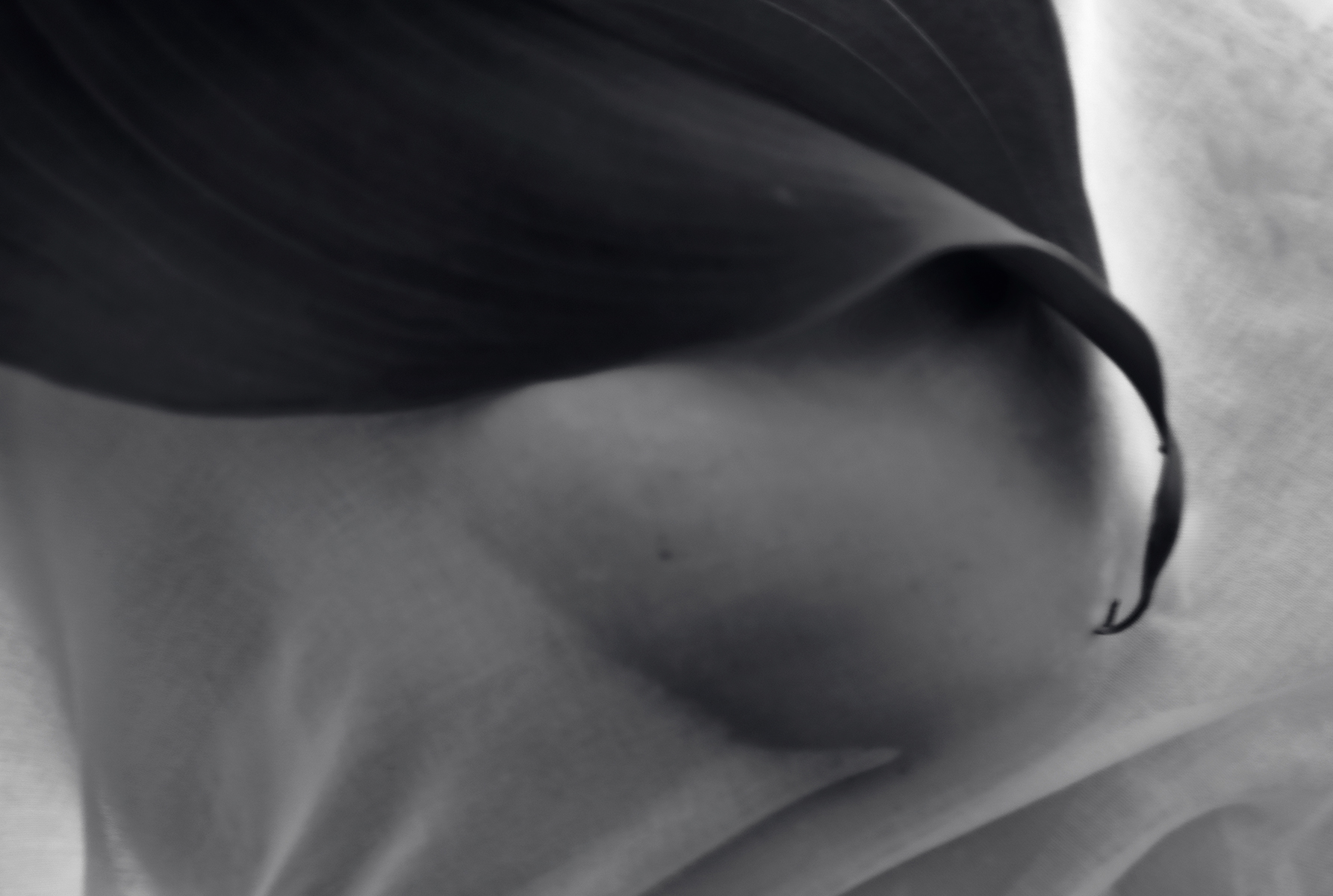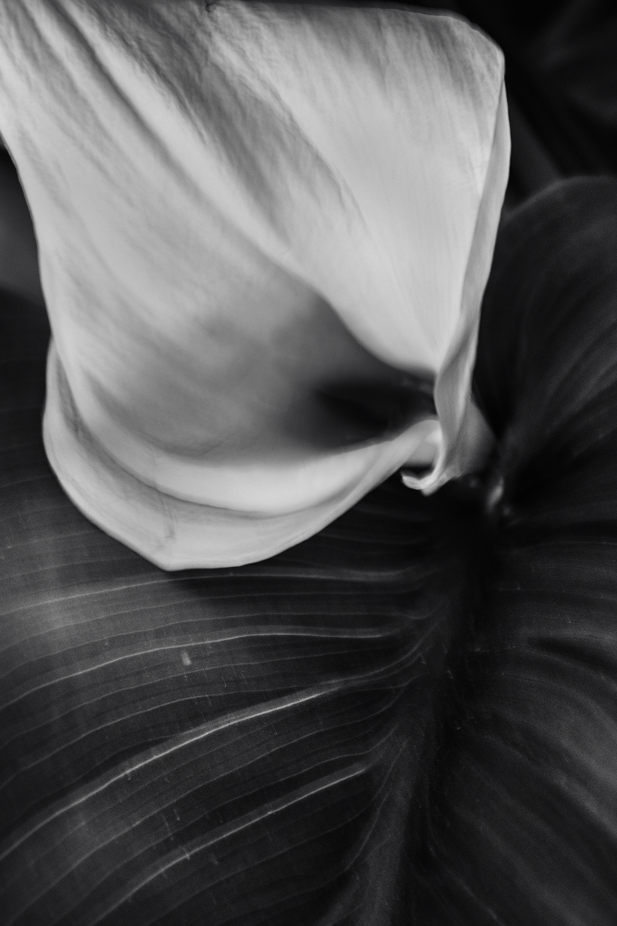 The idea of this project was completely spontaneous. “I love lilies very much and my vase at home was full of lilies. I liked the curves they created as well as their shadows, so I started photographing them at home, in the difficult days of the quarantine, always using natural light.” Natassa conceived the project in black and white from the beginning, because the white of the lilies with their large dark leaves would pop out a lot and their shadows and lines would look more intense in black and white. “This expresses me a lot, because through the few shades of gray, a multitude of emotions are captured,” she says. “These curves of flowers and their fragility reminded me of the curves of a female body, of a fragile, pure female existence. The simplicity and purity of the lilies and the female body touch on the simplicity of poetry, the poetry of existence.”