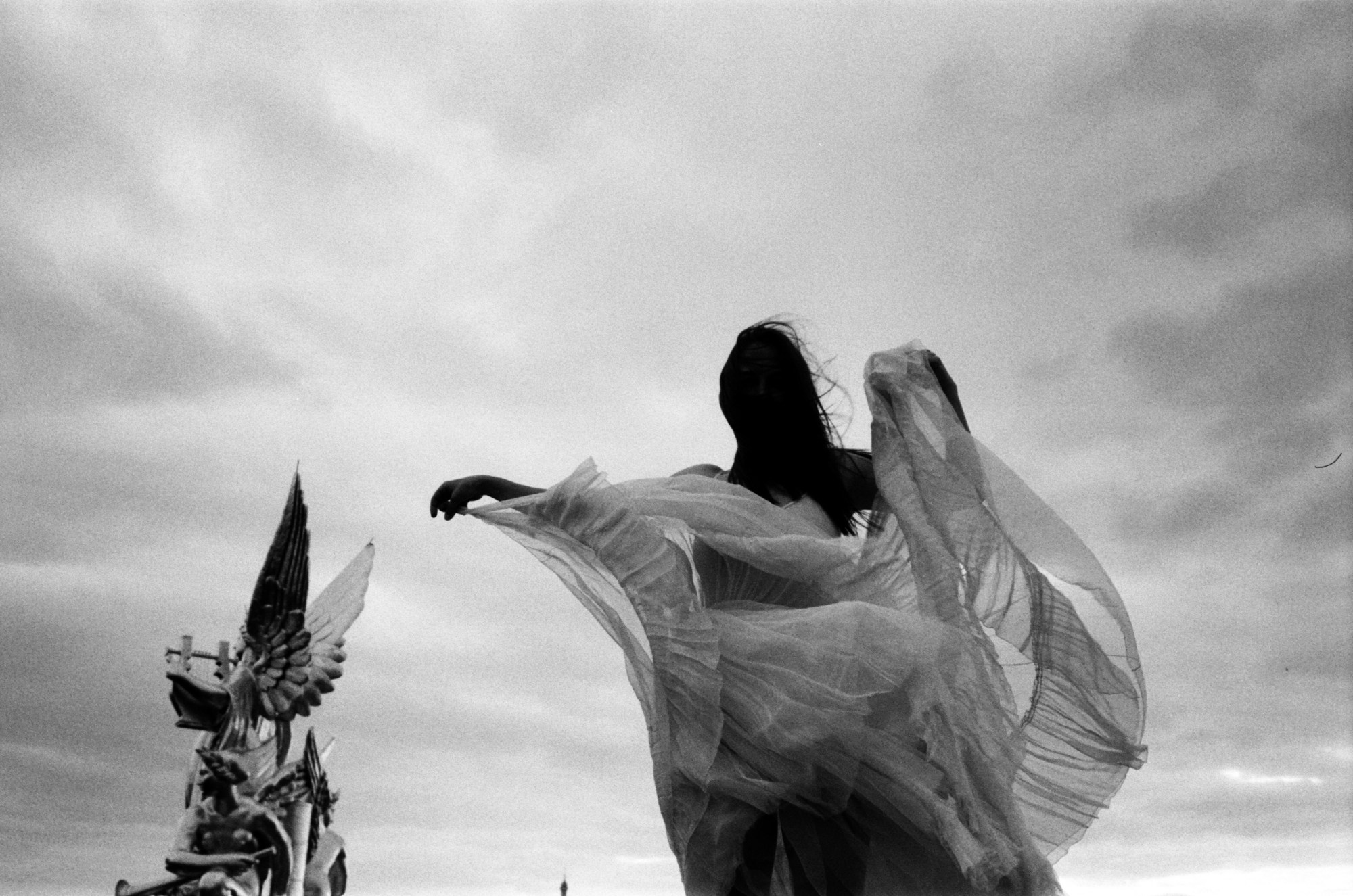For this series, taken in the summer of 2018, Nathan had the chance to follow Sarah Kora Dayanova, a ballet dancer from the Opéra de Paris. She had access to the rooftop of the Opéra, and the two spent several days up there shooting a series. Nathan photographed her while she was wandering around and dancing on top of the opera. “Between the sky and the earth, the clouds and the surrounding noise of Paris, she wandered like a celestial object between the golden statues and the black horses on a stormy Sunday afternoon on the rooftop of Opéra de Paris,” he reminisces.