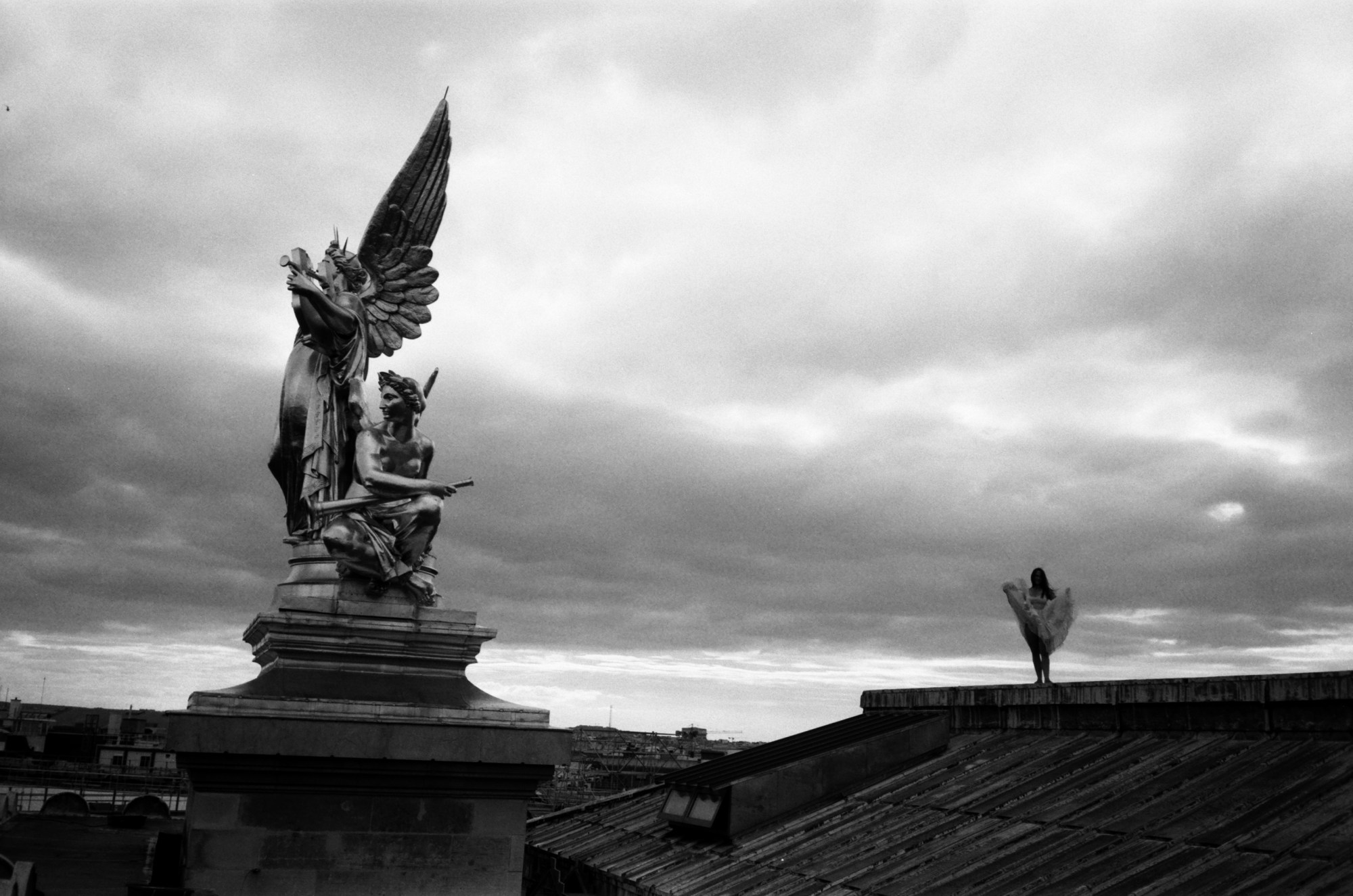 // Nathan was born in Nice and is now based in Paris. As a photographer he is mainly attracted to showing daily life and people´s interaction with their environment through intimate, sometimes absurd or even banal scenes, taken in the street or in open spaces. For this series though, he went up high: he followed a ballet dancer around the roof of the Opera Garnier in Paris.