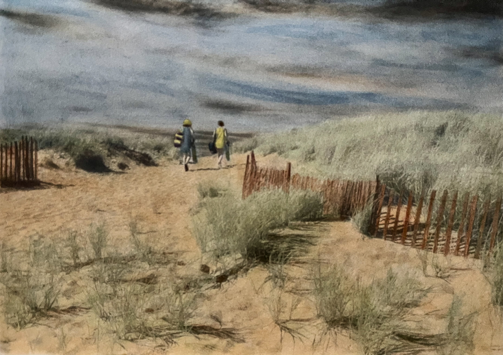 Photographing with infrared film and then hand coloring on matte surface prints with oils and pencils, Elizabeth has created images of land and seascapes along the East End of Long Island that appear both dreamy and timeless. “Each piece is created to express the strong sense of place I have discovered along the Long Island’s coastline.”