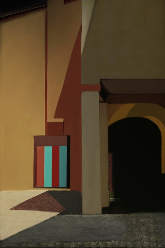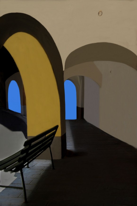 “I photographed a beautiful village in Liguria: Varese Ligure. I took the pictures in August, with a strong sun. The light filtered through arches and narrow alleys, creating mellow shadows that made me think of the colours of the artist Mario Sironi,” she says. In post-processing Tina digitally removed windows, electric cables, broken doors, bringing back the original colours of the village and, between the arches, she painted the sky using virtual brushes in her editing software. “I wanted there to be a sense of freedom and dismay. Feelings that are current in this post-modern world.”