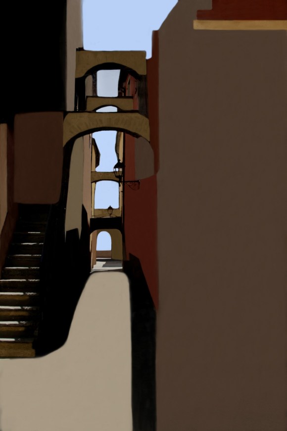 “I liked the colours of Liguria: those yellows and reds. Beautiful. I liked the alleys and the ways out. And the light. In Liguria there is a wonderful light that emphasises the pastel colours of the landscape and the towns.“