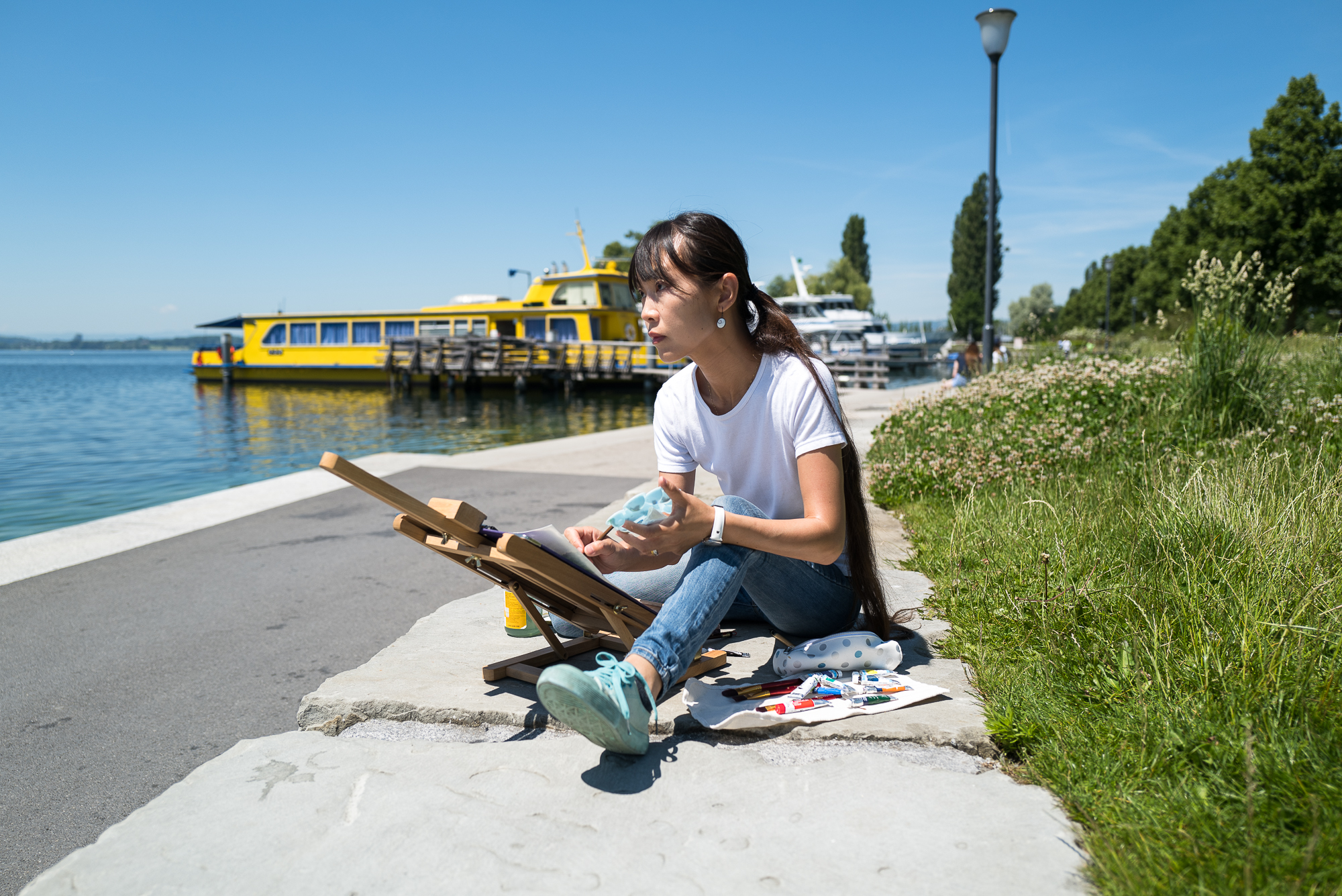 In Zug, Switzerland, Callie became acquainted with the Chinese painter Miao Li and decided to document her at work. Miao was born and raised in Xinjiang, in western China, studied at Peking university in Beijing. She fell in love with art at a very young age, and she attended Xinjiang Yeyu Art Academy from age 6 to 16, winning several international art prizes. Growing up to be an artist was Miao’s dream. Although she decided to go for business studies at university, art remained her hobby for many years. Fortunately, she was able to pursue her dream again to become an artist after she moved to Zug, Switzerland, in 2016.