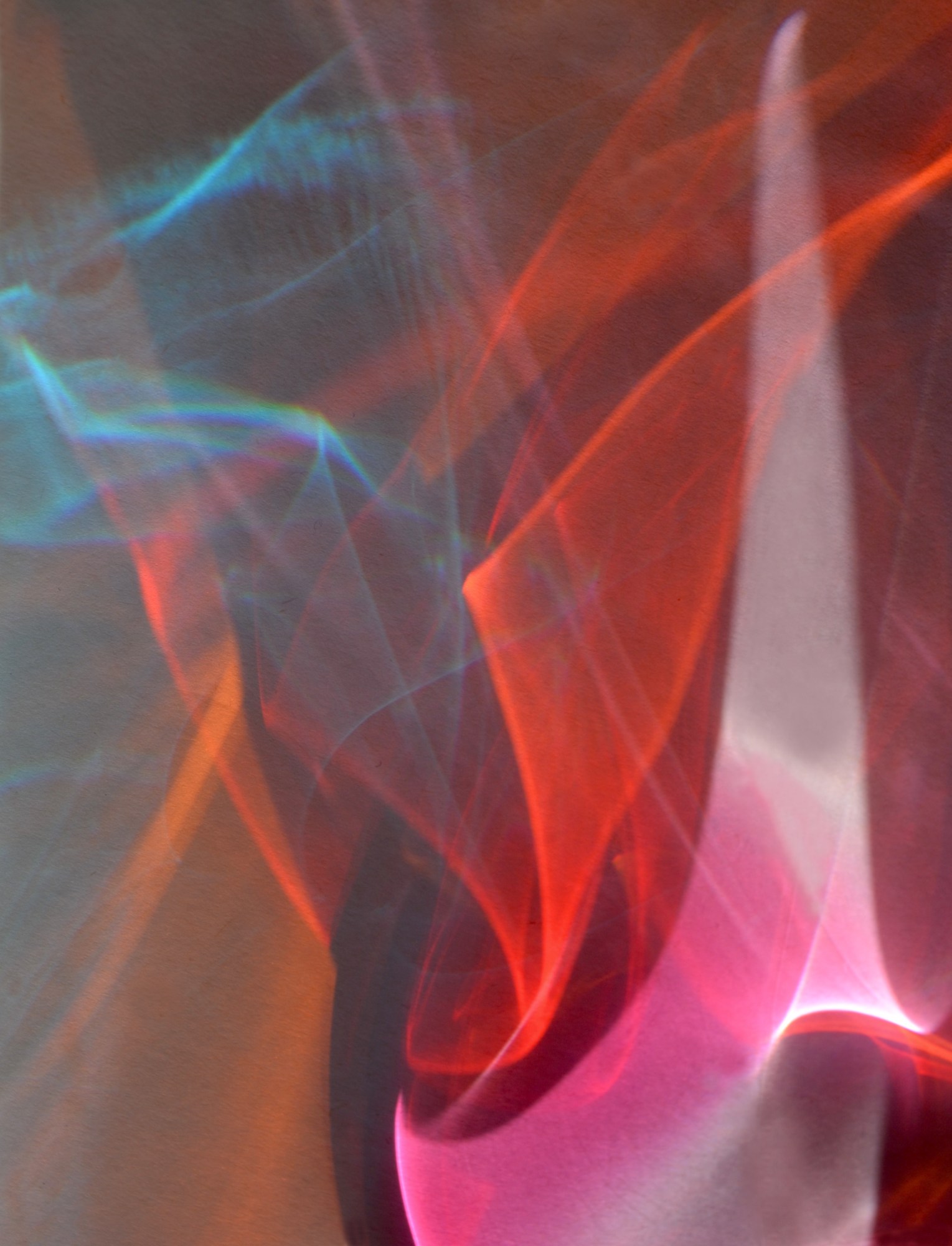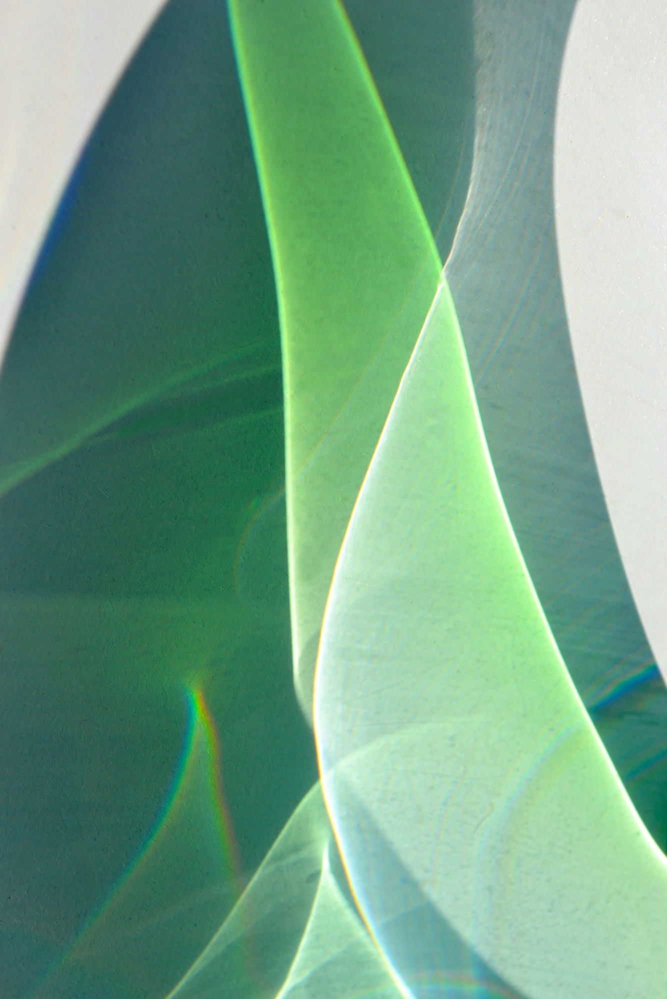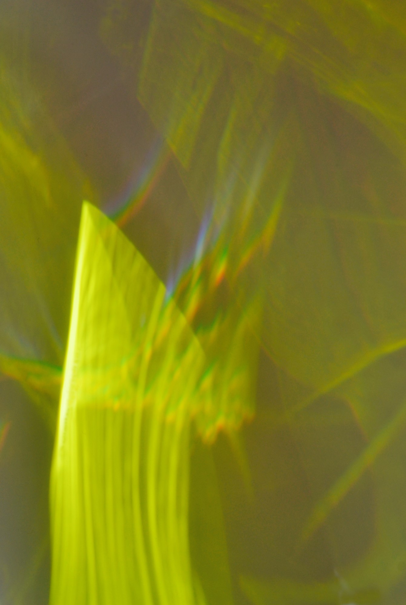 For Tina´s glass series she captured a reflection of direct sunlight passing through coloured bottles and other glass items on to various surfaces. Different times of day created changes of light on the glass, and depending on where she was sitting in the lounge room she could see potential images appear. It was usually only momentary, then the artworks she was seeing were gone with the transient light.