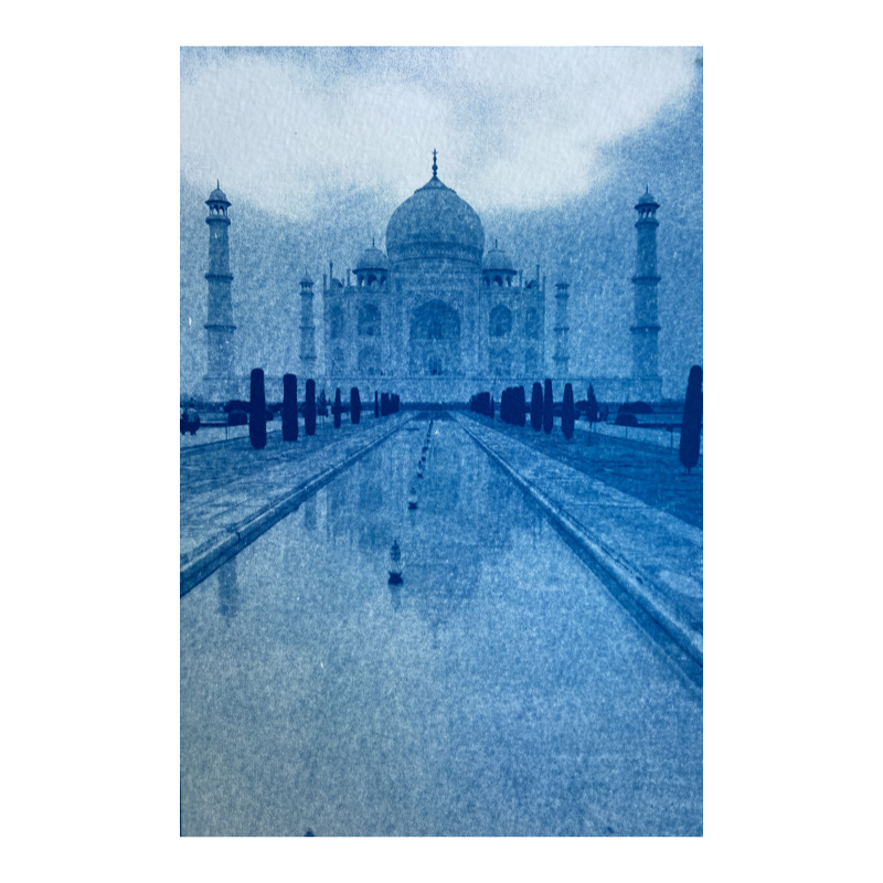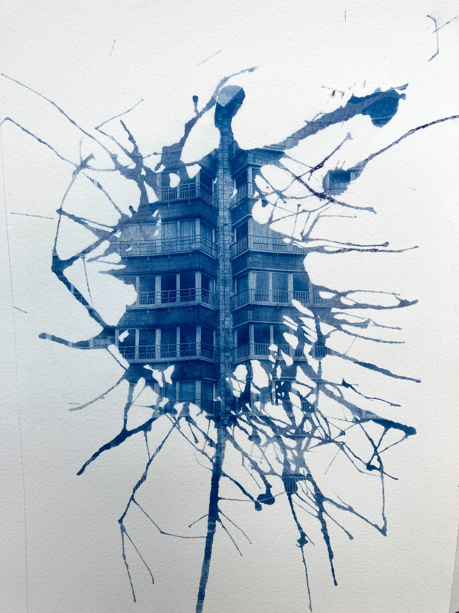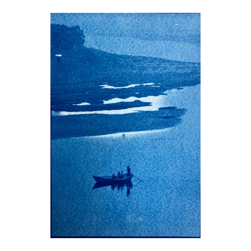 “I love the old technique of cyanotype, the process of mixing the chemicals, treating the paper and rinsing to finally see the result. The process gives a certain character and layering to the image, the original photo seems immersed in another world.“