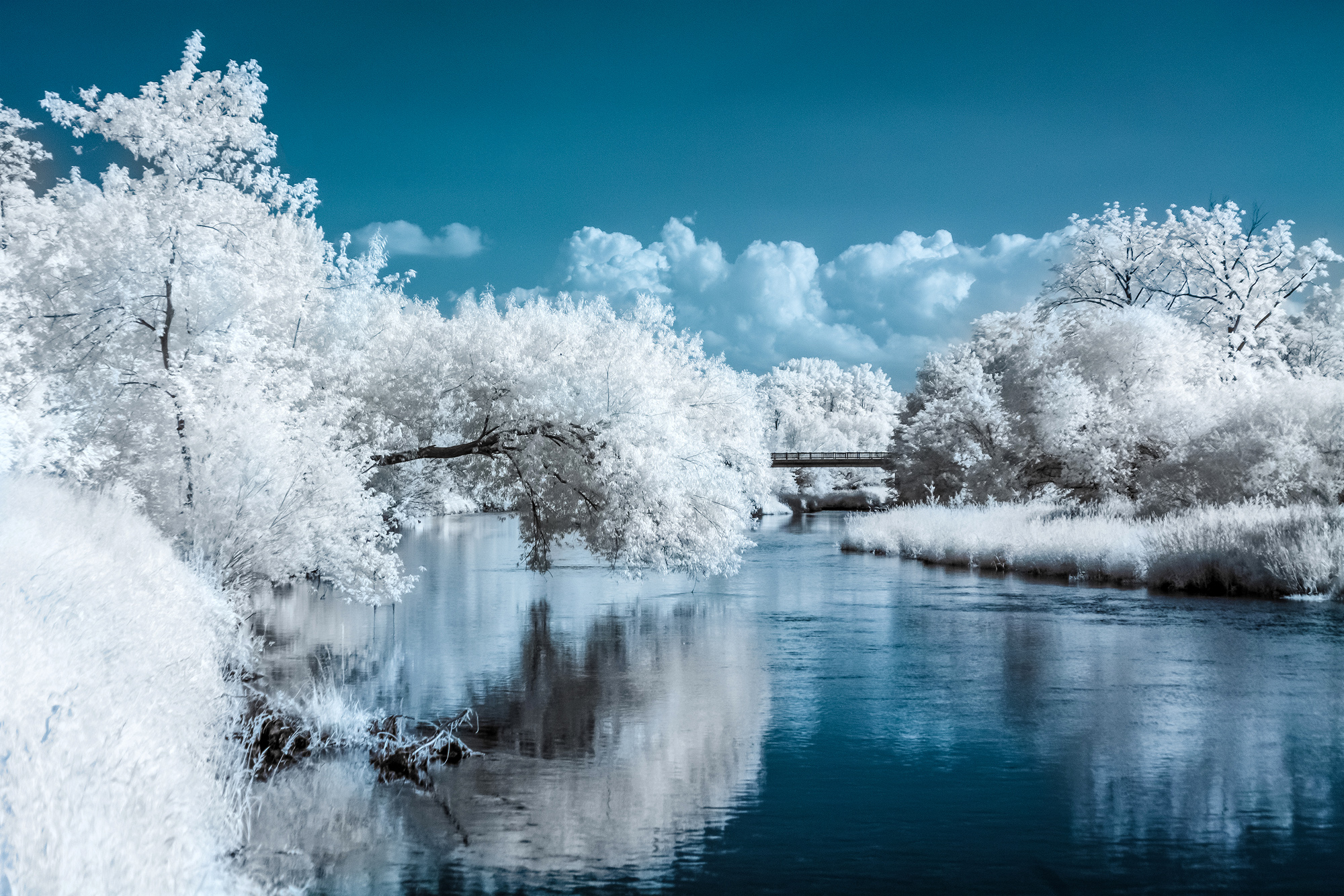 Using 550 nm filters can yield wonderful red or colourful foliage, but needs more post processing than pictures with white foliage done with the 720-950 nm filters. “Due to the white foliage my pictures have been misinterpreted several times because the white vegetation seemed to be snow for some people on a very quick view,” Klaudia adds.