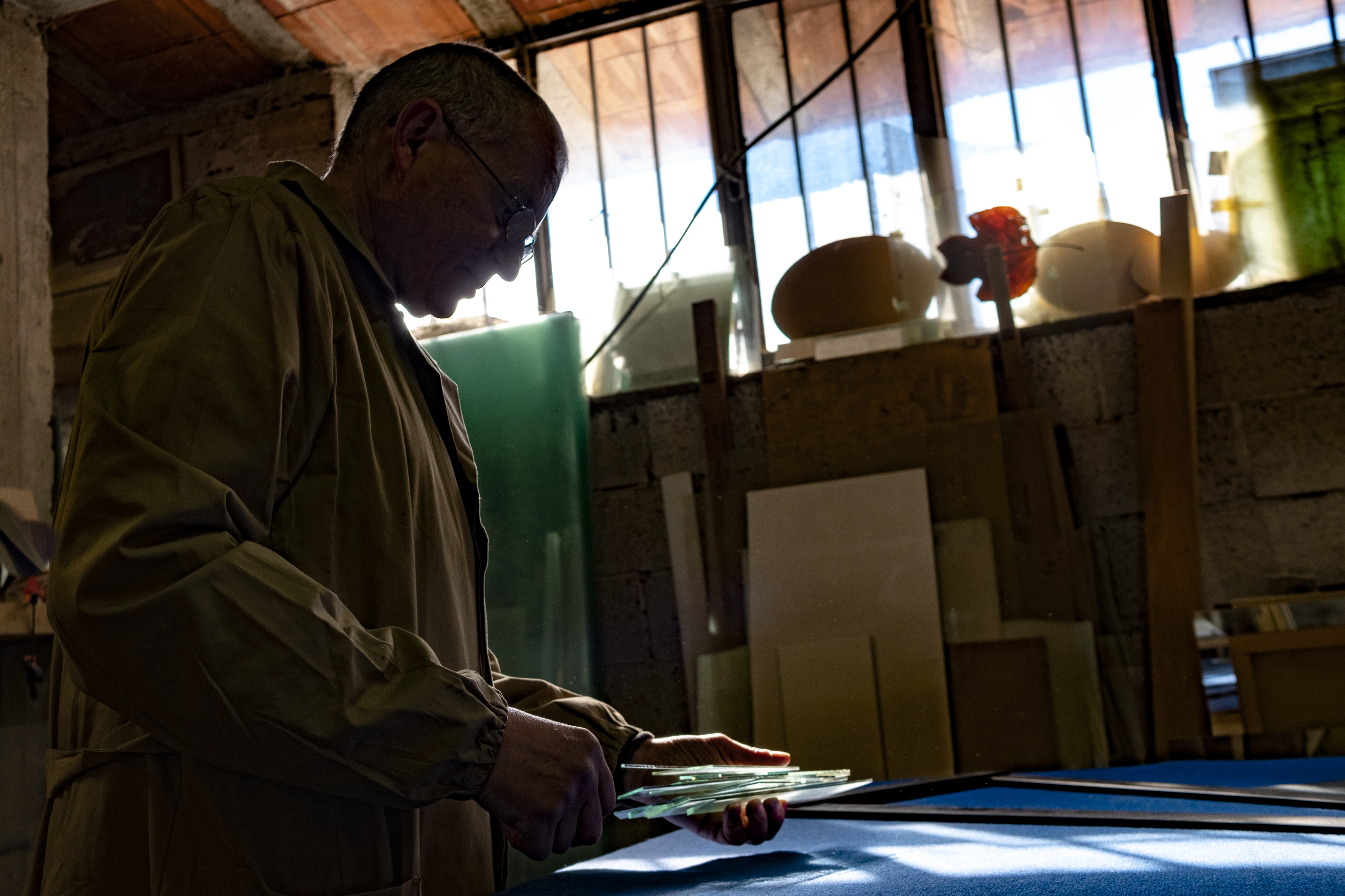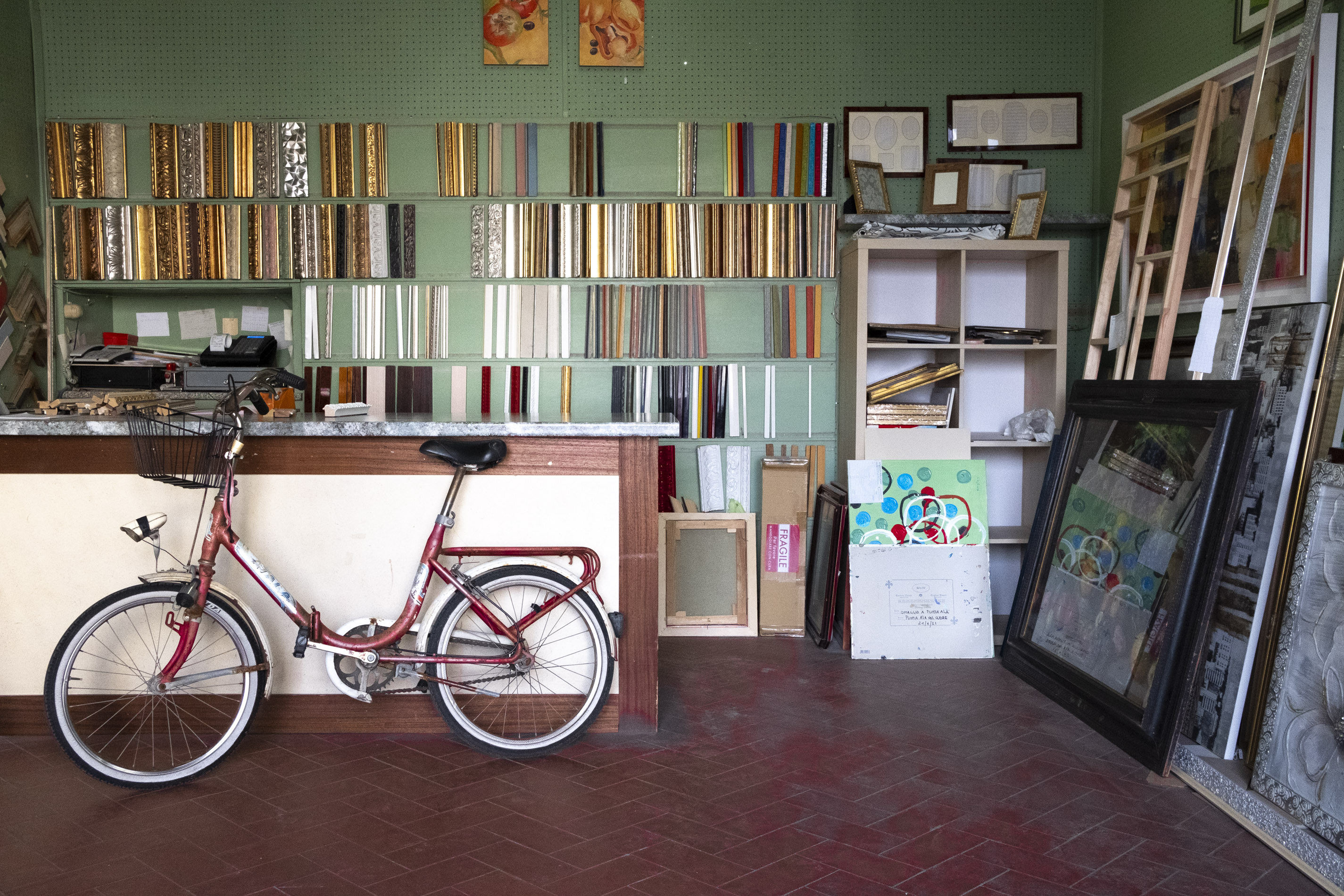 // Elisa is from Bibbiena, Tuscany in Italy. A scientist by training, she began photographing without formal training, and printing her own pictures. The magic framer” is a series she took in the workshop of her favourite framer, Roberto, in 2022. She spent three days with him while preparing an exhibition.