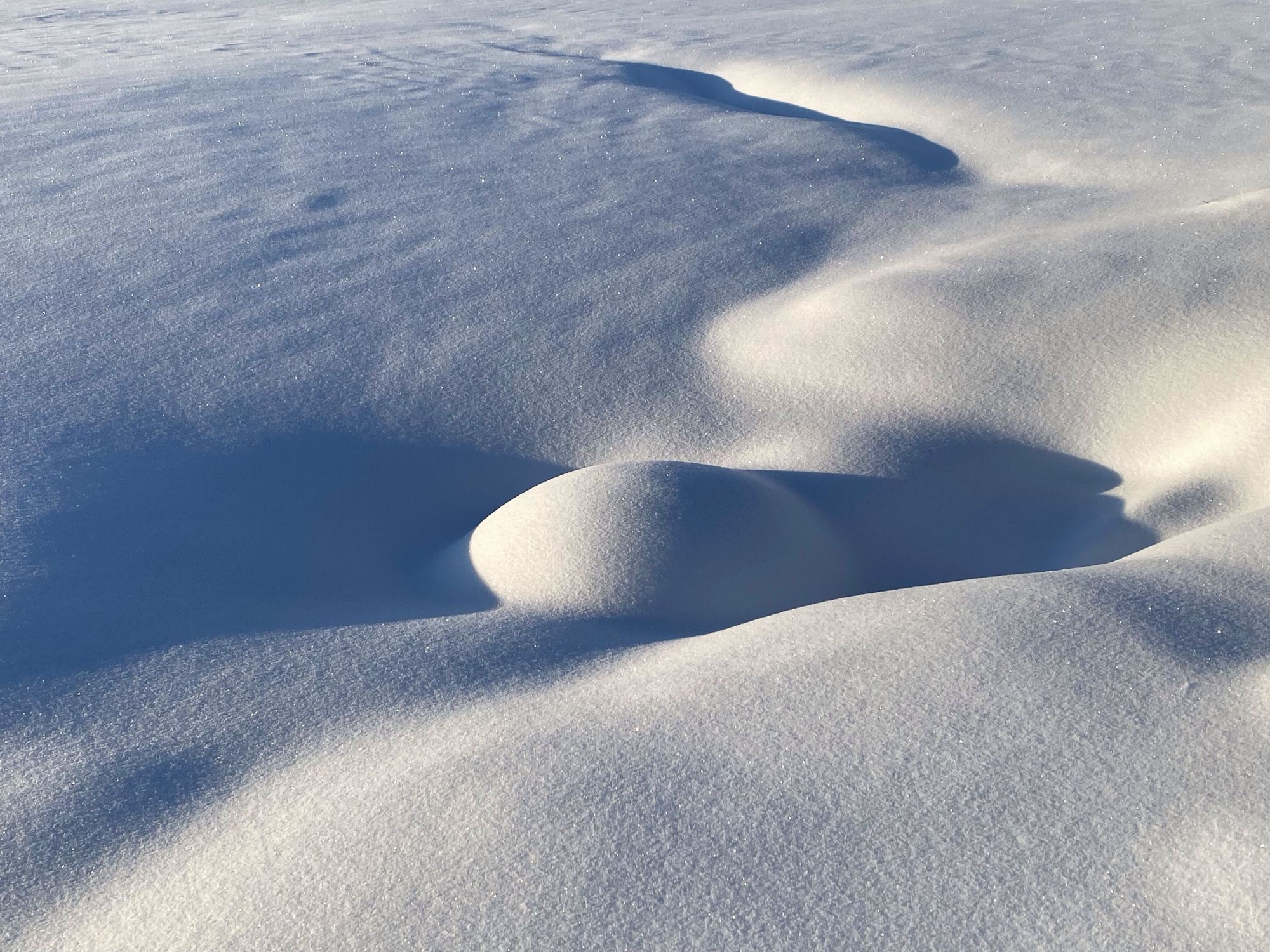 All images were taken with iPhone 11 Pro, under cold conditions, with temperatures ranging from -20 to -45 C: photographer’s fingers and cell phones freeze very quickly! This, along with the difficulty in navigating deep snow, led to a process akin to “spontaneous composition” and “instantaneous choreography” in dance improvisation: being open to the unfolding present moment and making safe split second choices that are playful, heartfelt and surprising. “I am pleased that most of the final images are unedited (thank you analog eye training!) except for a couple where small distracting elements which could not be danced around were photoshopped out,” Tina adds.