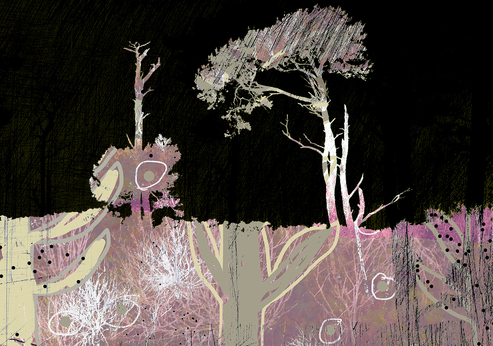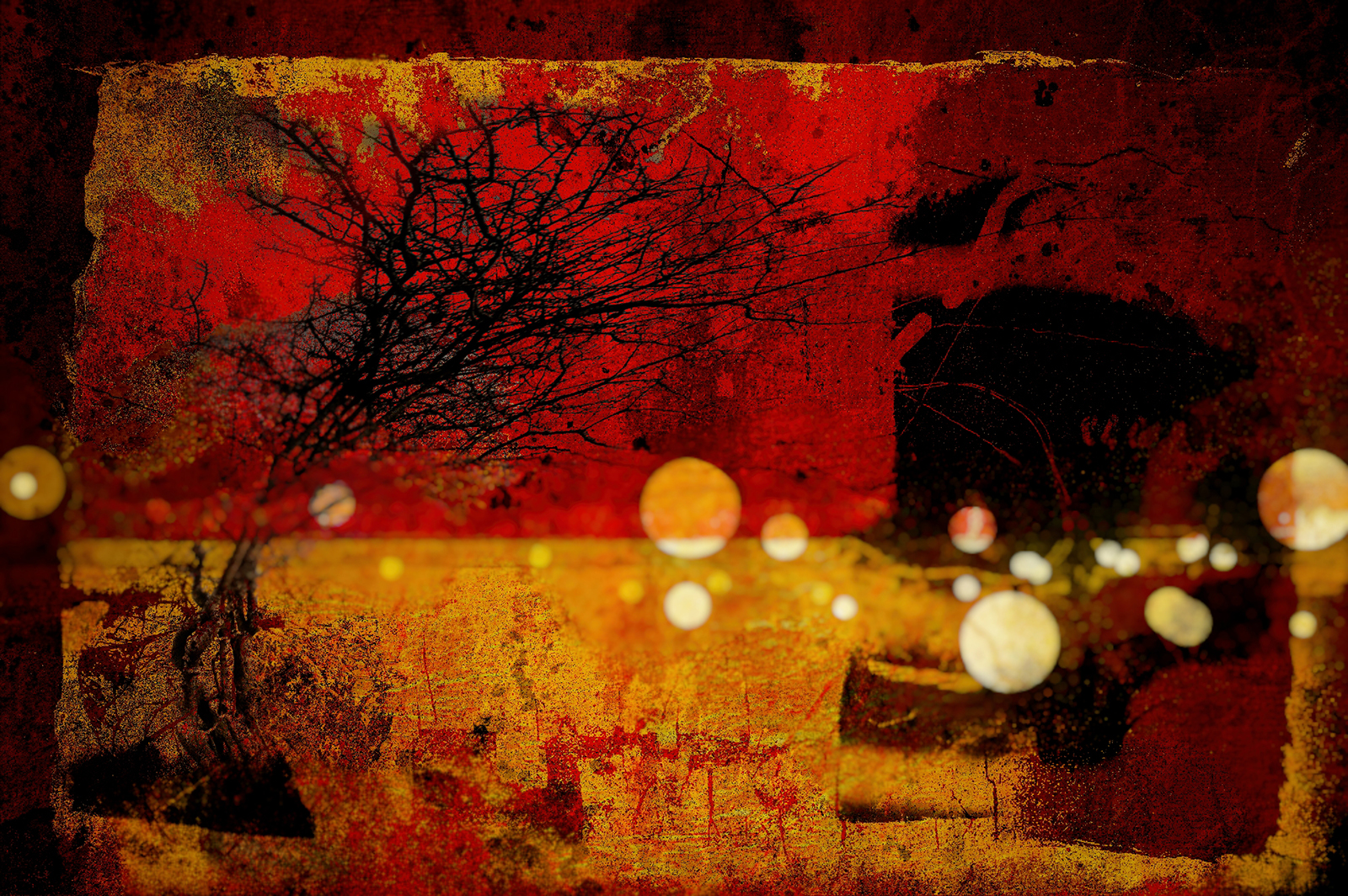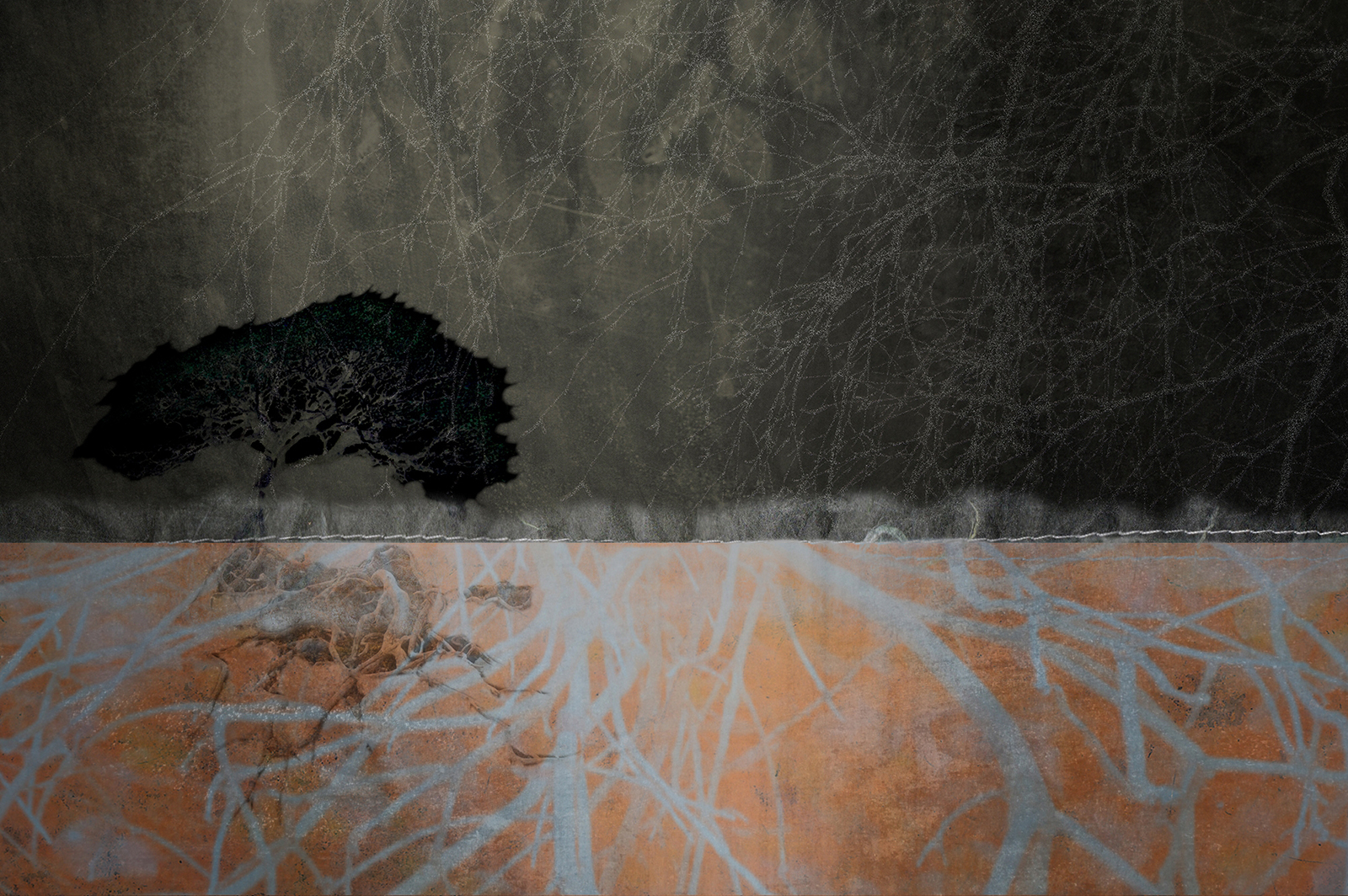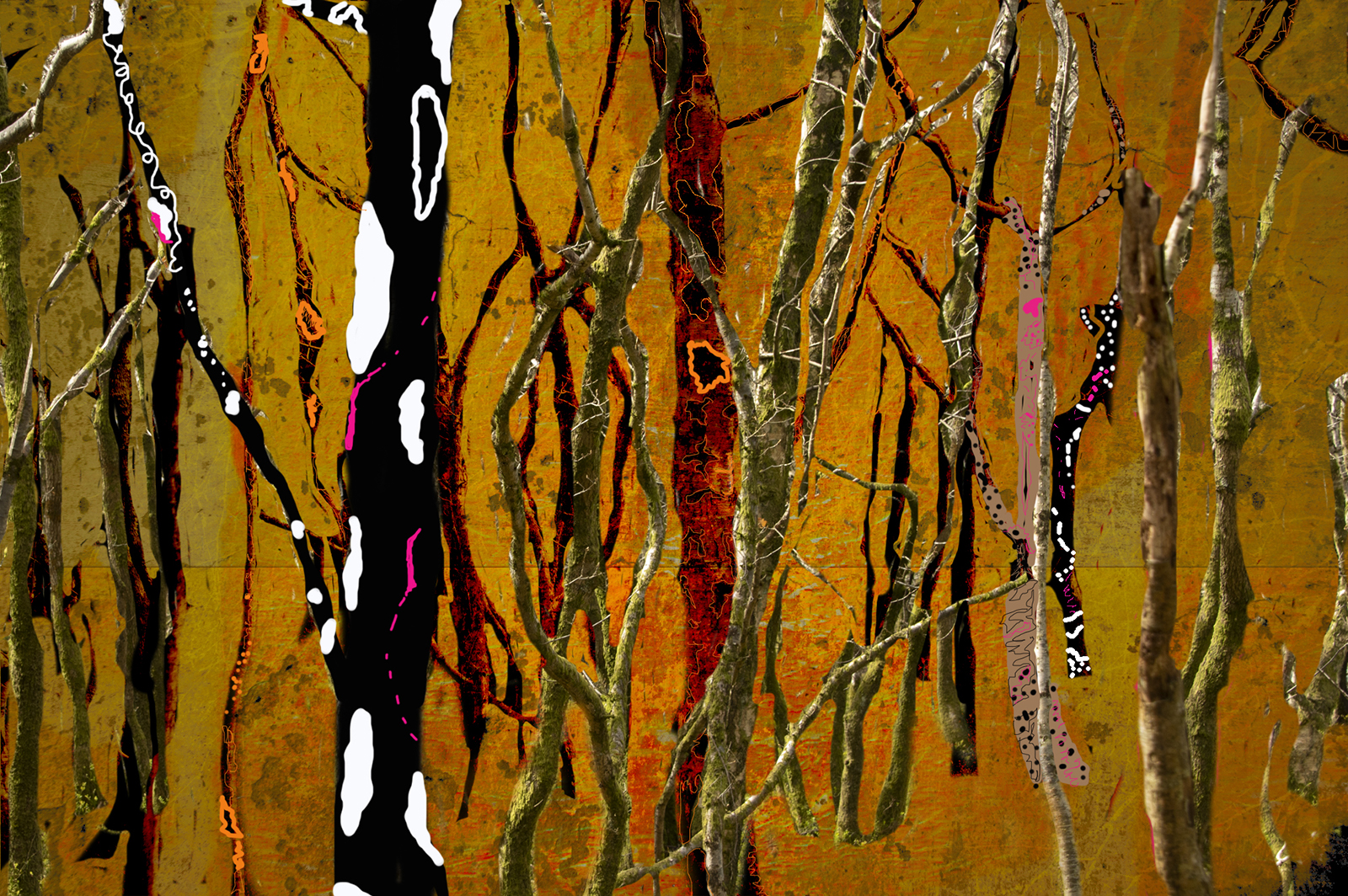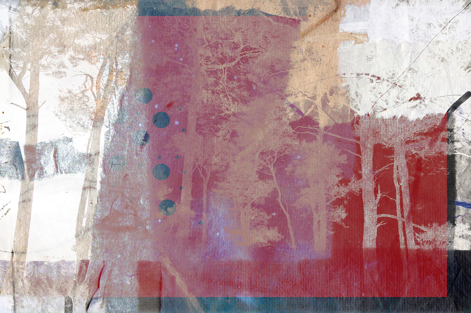 //Janet is from the United Kingdom, now based in Somerset. She trained as a Textile Designer and her photoart revolves around textures, surface patterns and blending her own photographic images with mixed media, collage and gold leaf. We present some images from her series of expressionist landscape art from woodland sanctuaries.