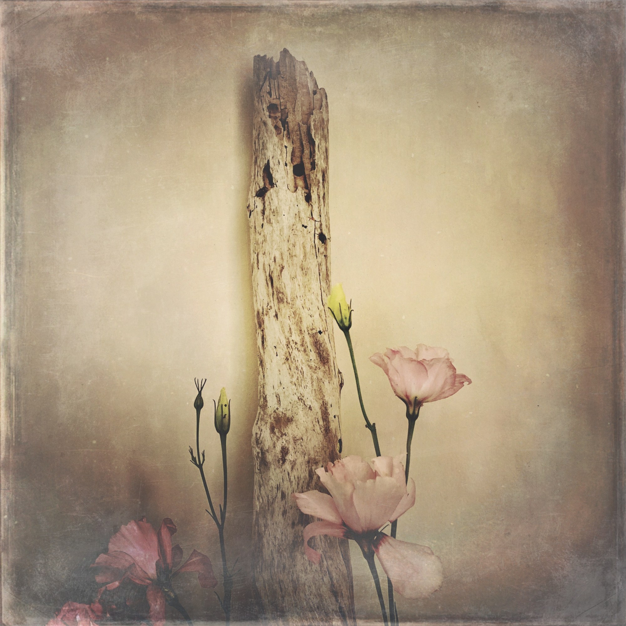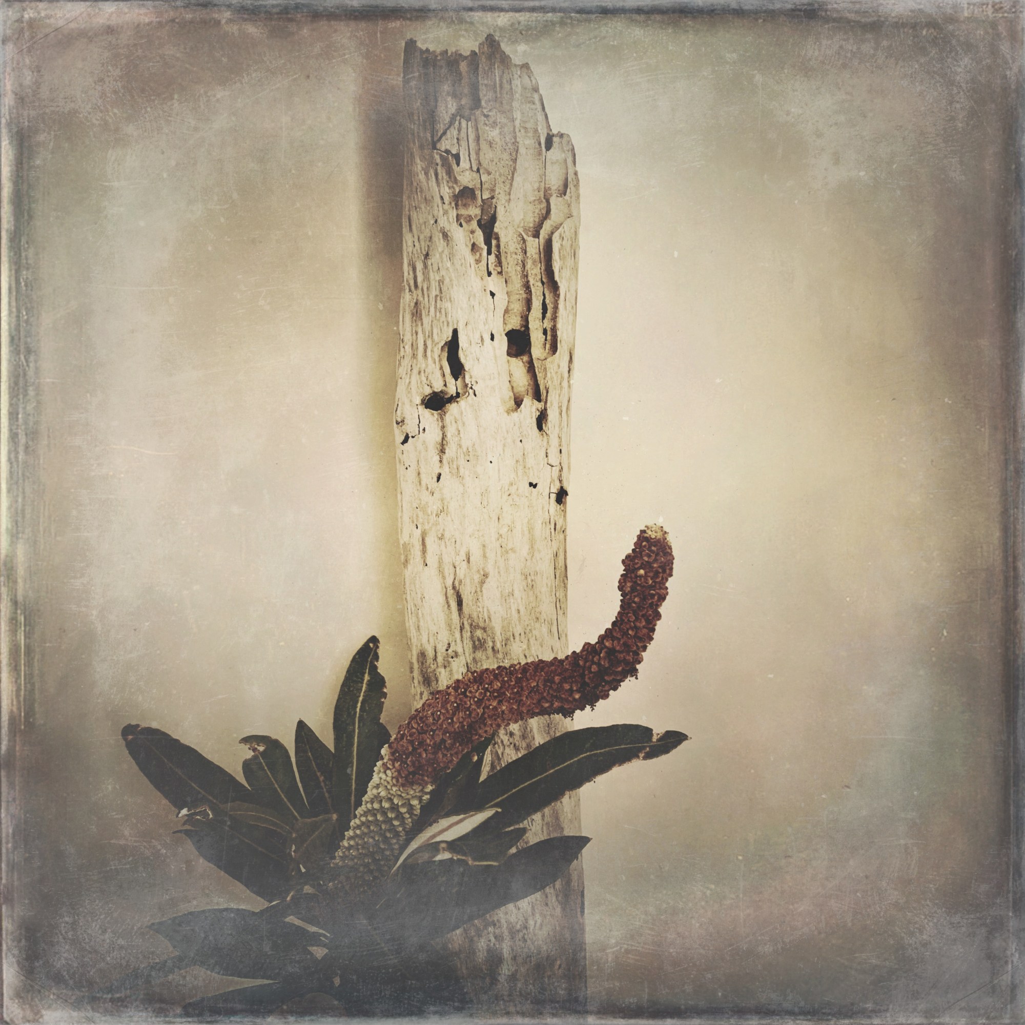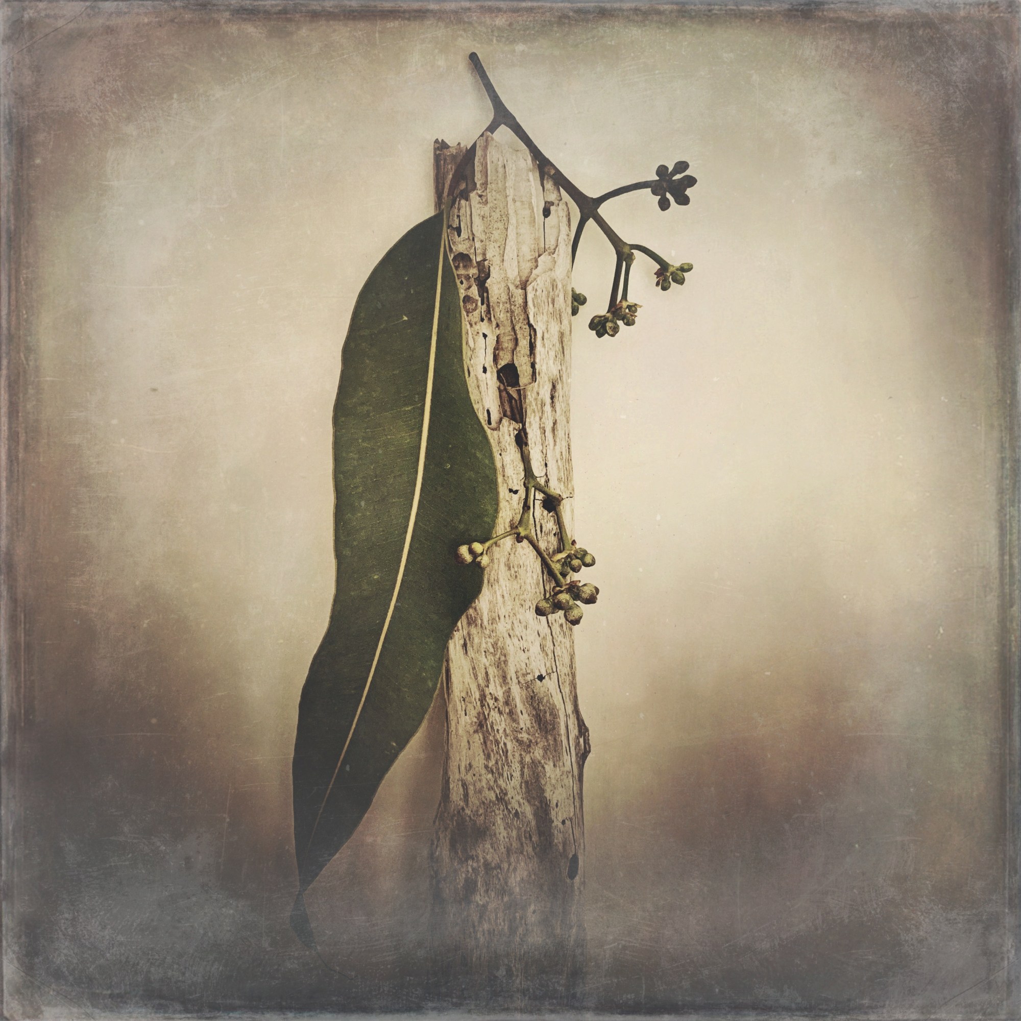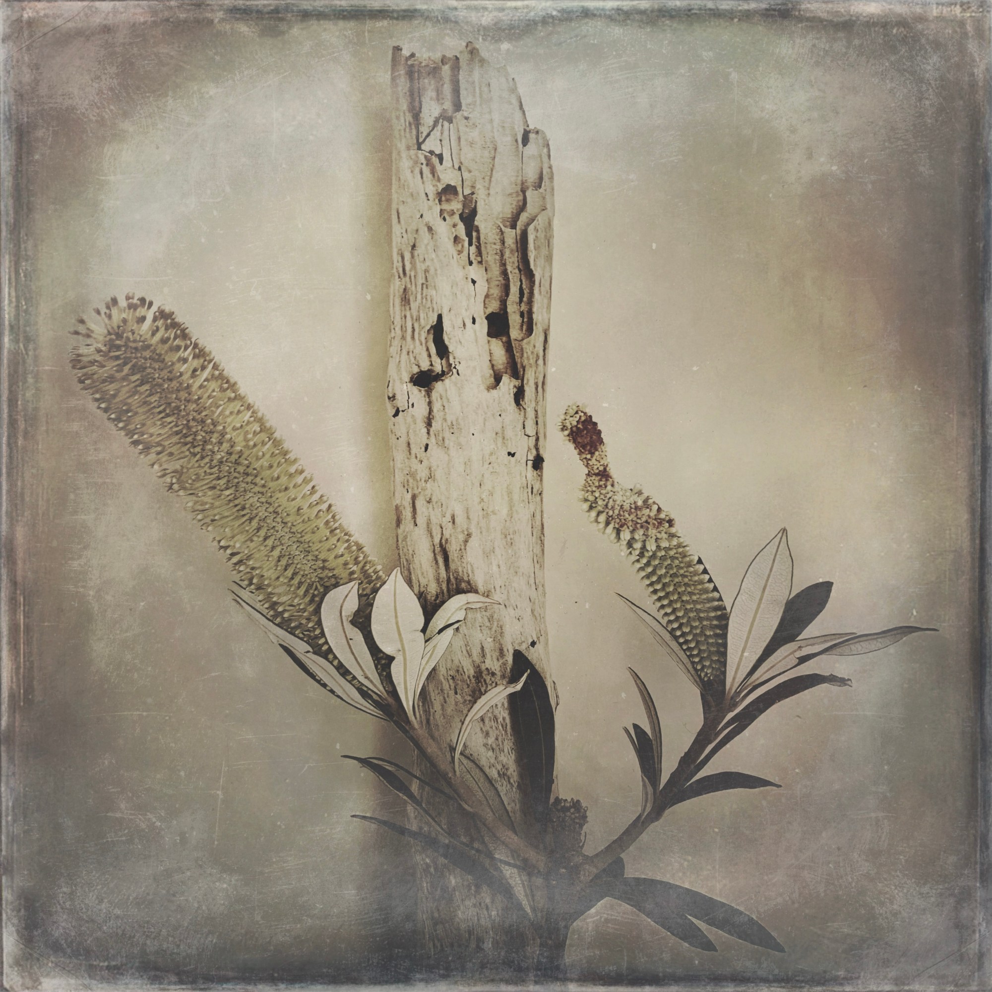 This is a series called “Honouring Nature”. “During the catastrophic floods of 2020 in our area there was a lot of debris on the beach – I found this particularly interesting piece of driftwood and felt compelled to honour its life,” Robyn says. She draped or arranged small pieces she found in her Australian garden around the timber and took still-life photos of it in her home studio with natural light on her iPhoneXS.