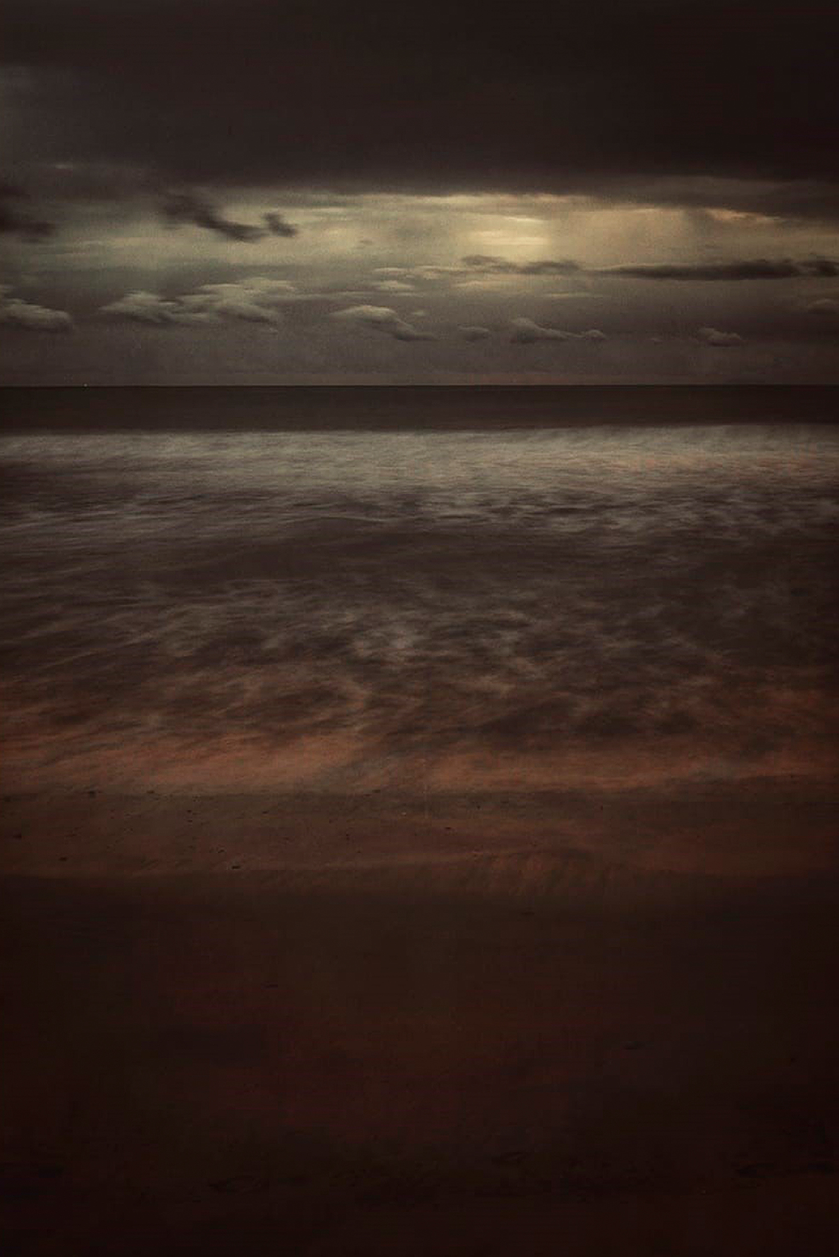 Nella explains the series in her own poetic words: “It is not the colour that is the essence, it is the duration, the realization of things. It seems that there is nothing left, only vast, mysterious landscapes, incredibly distant from their origins. Exhausted and lost and immobilized in their inaccessible distance. Immersed in a painful twilight light. Yes, because it is not the “rising” of the landscape. From absolute darkness. It is the return, after the last glow, like a disappointment, like the end of a long journey, like an infinite tiredness. Miraculously, fragments of a flying soul reappear, visions that proceed towards alchemical transmutations, before the darkness closes on every gash, on every shore, on every sky. Mists and foams and cumulus clouds, undone suns and reflections of sky and sea, surprised moons fleeing the night, and rocks and reefs and romantic landscapes like postcards from a forgotten journey. No wanderer ventures to the heights of their own pride. Just an immense inexpressible silence. No beyond. Among the dense vapors of water and sand we receive snapshots of a single irreversible sunset, the painful agony of the beauty of nature that is gone.”