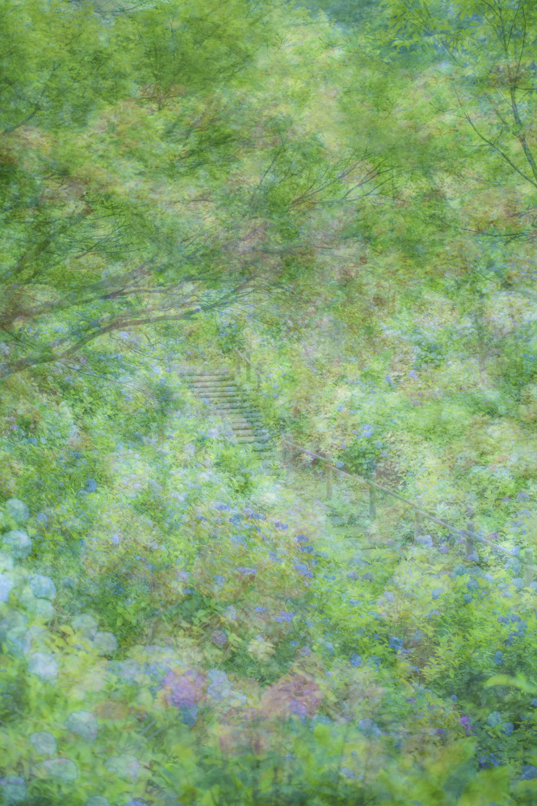 To create the artworks, I took photographs of scenes and moments I was drawn to while walking around natural spaces. Then, I composited these images in post-production to create the final images. I define memory as an impression that melds visual fragments from different scenes that we see while experiencing an event. This multiple exposure technique enables me to collect the visual fragments over time from different scenes I have experienced, and combine them into a compressed single image in a way that represents the passage of time, thus visualising my memory of experiencing the natural space in physical form.