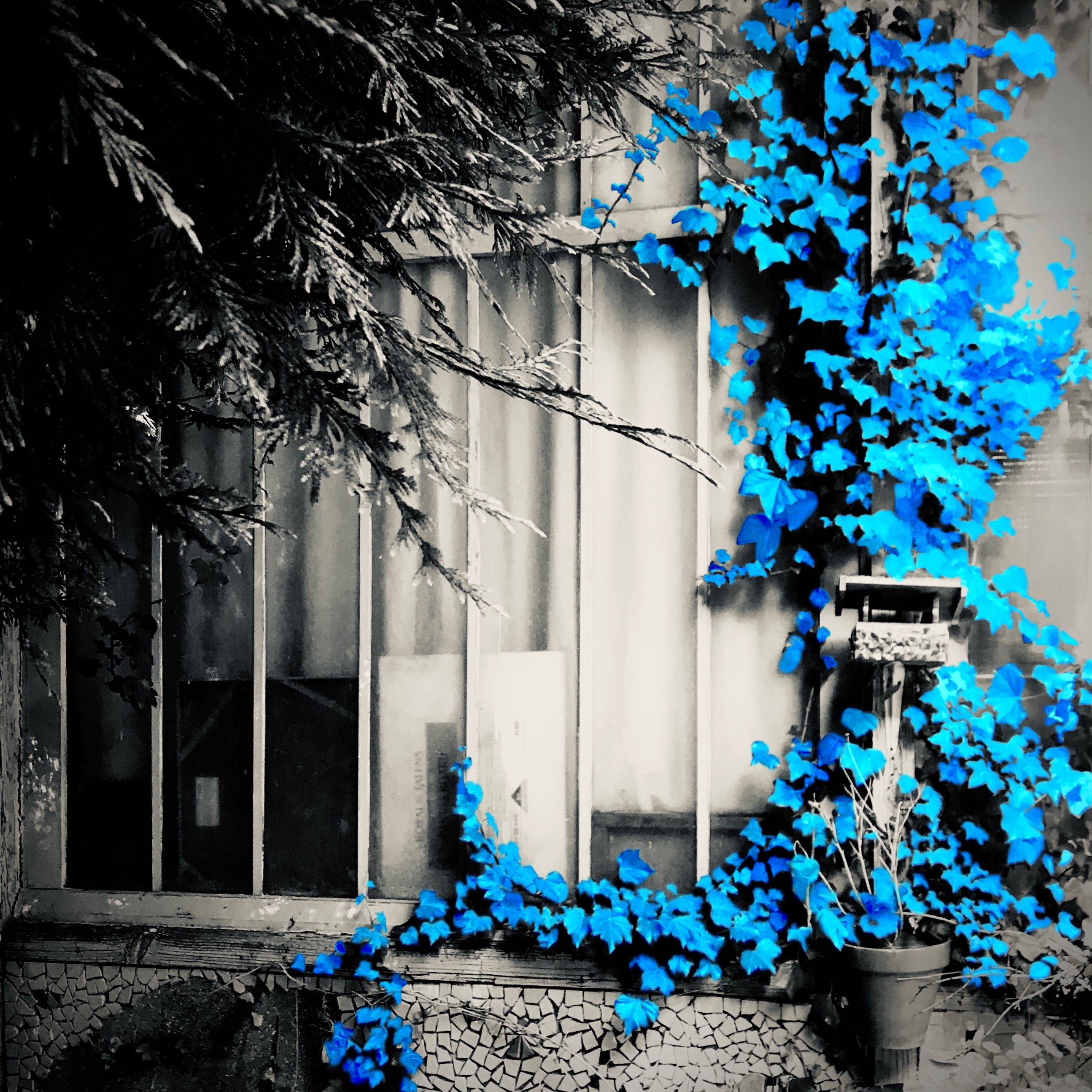In the Black ‘n’ blue series, Anne Iris deliberately incorporates blue hues into the plant matter to captivate viewers’ attention and emphasize the significance of this valuable resource. The subjects featured in this series primarily consist of urban scenes, encompassing not only the artist’s hometown of Paris but also locations she has visited during her travels. Throughout the series, the botanical element takes center stage, drawing focus. Initially, Anne Iris opted to merge painting and photography by “repainting” the plants in blue onto black and white photographs, which were then edited on watercolor paper. However, to achieve the desired outcome, she ultimately turned to a digital approach, meticulously coloring each pixel in blue.