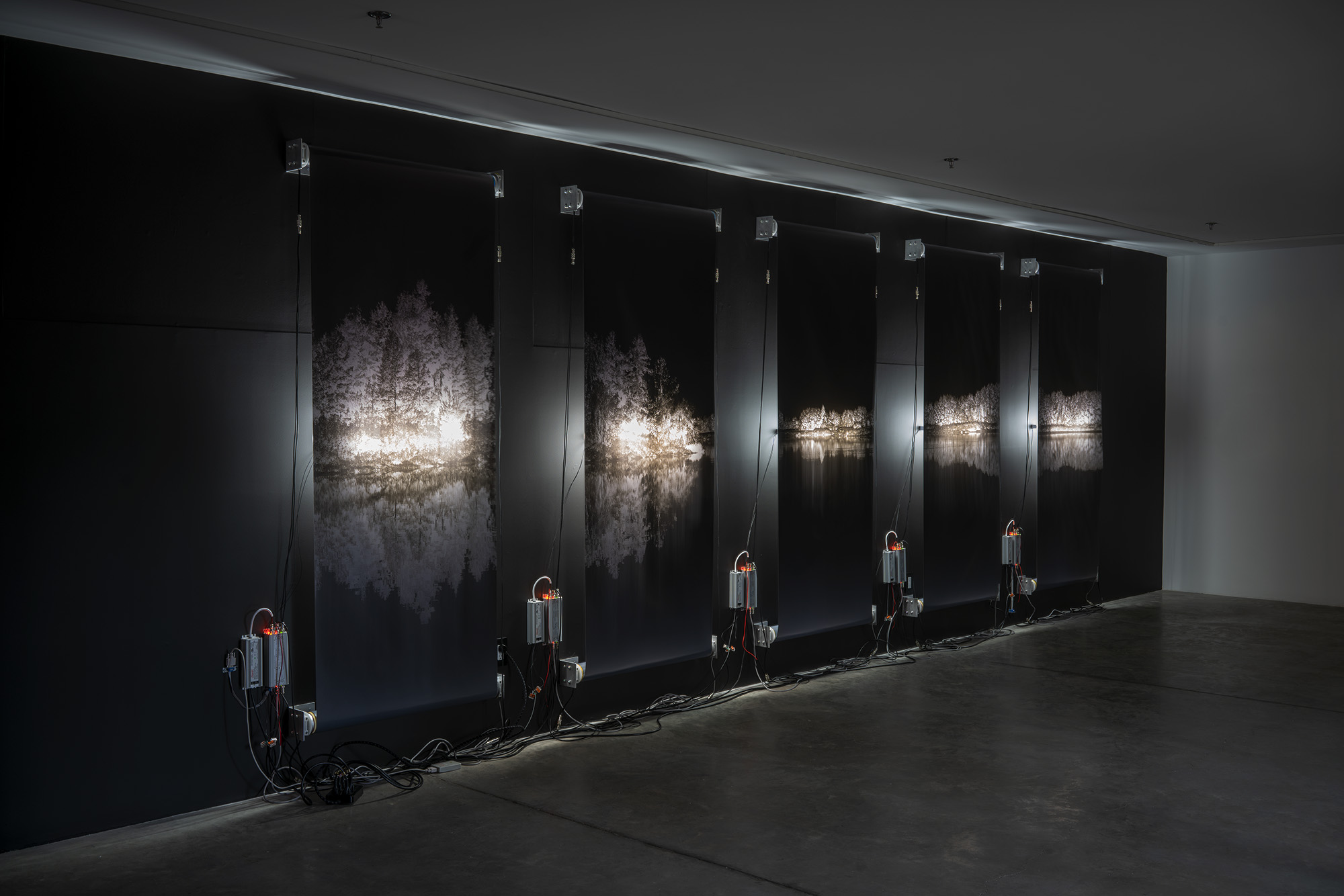 Although photographs of the installations can surely not do justice to a real life experience of viewing these artworks, in the gallery below, you can appreciate the luminous “scroll” displays Clint has created with his landscape photography, and also see the technology used to illuminate the scrolls.