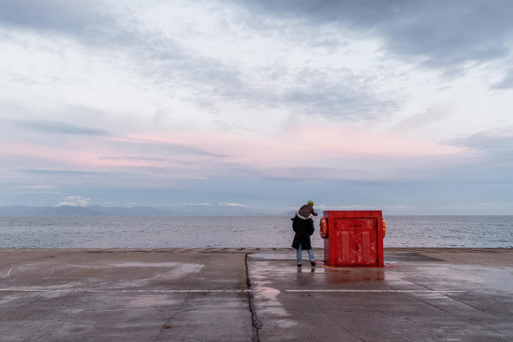 I pass through the same place, again encounter another figure, another presence. Reflect. Close to the water of the sea, of the lake.