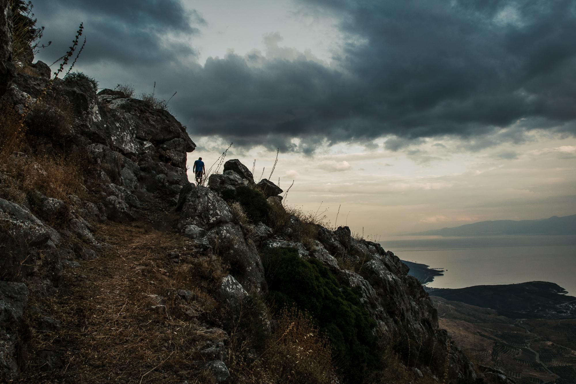 The horizon is vast. The view is grand. A human figure in the background, where the gaze gets lost. As if afraid to approach.