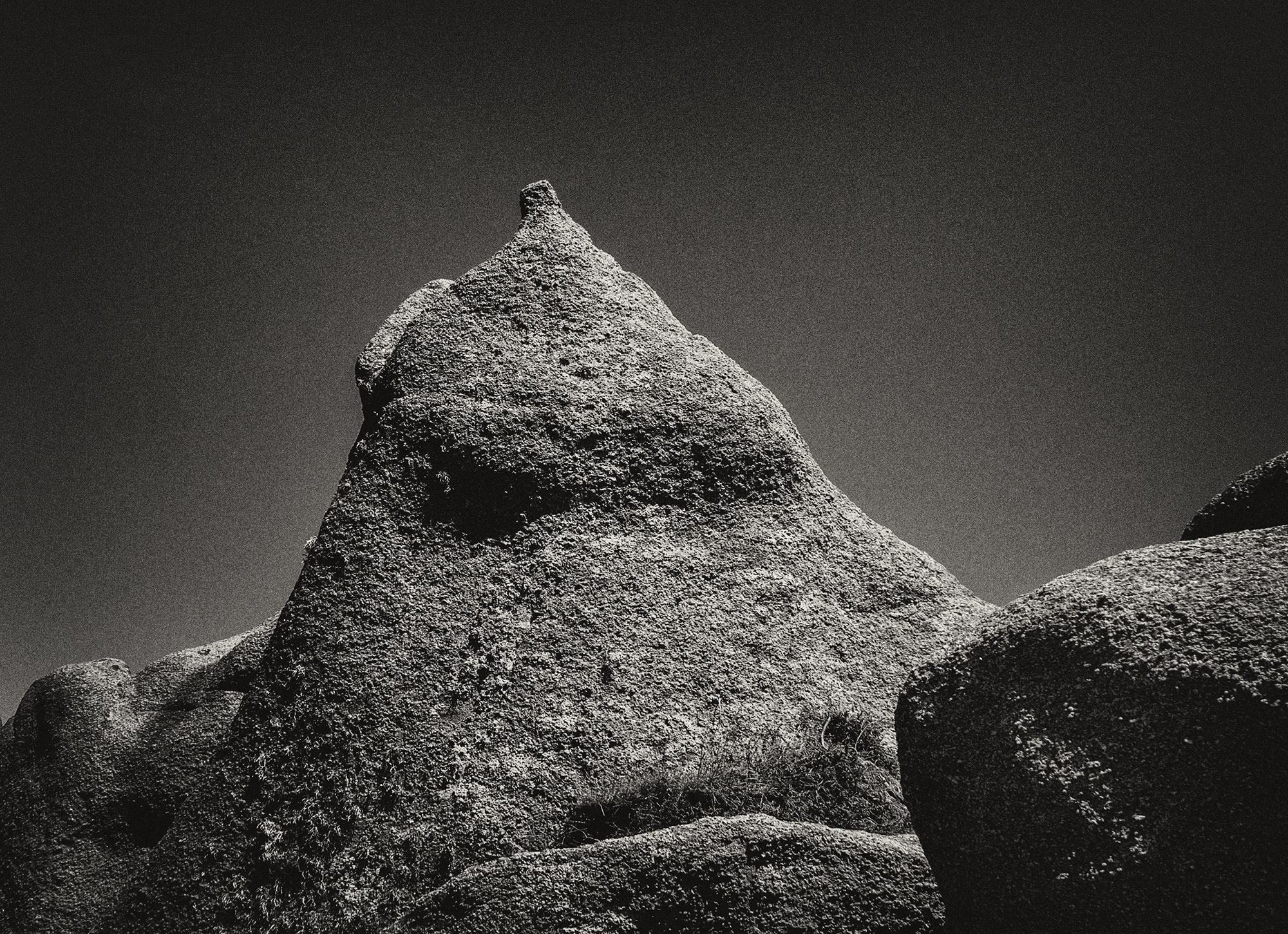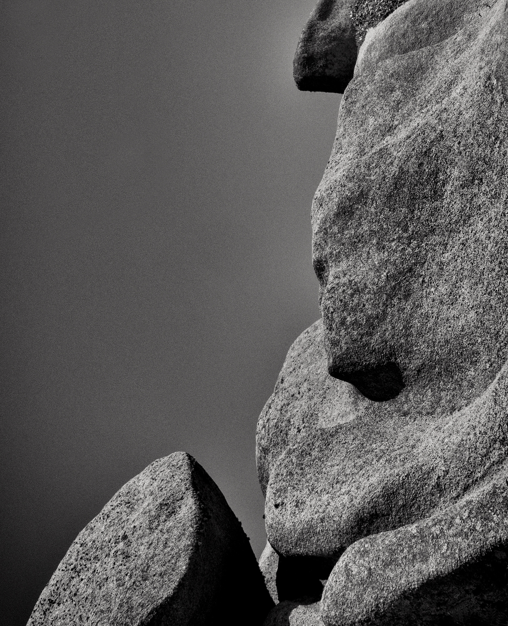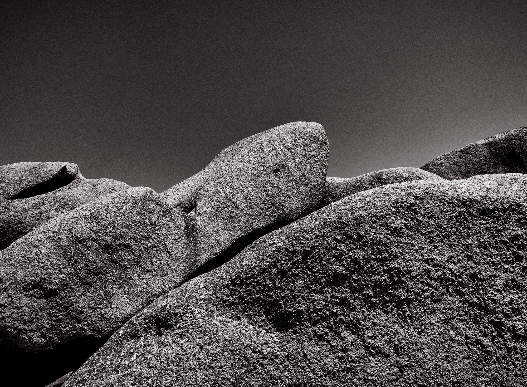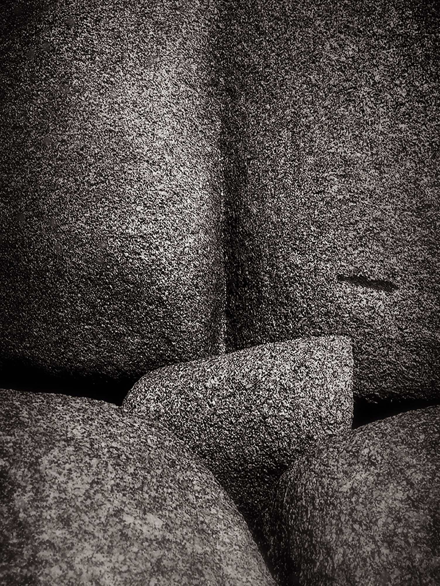 “I think the objective reality conceals secrets and in my photographic practice, I aim to make visible what is hidden in the ordinary. Wind, time and water have sculpted granites: their surface, struck by light or shrouded in shadow, their sensual curves that are the subject of my visions, evoke bodies, wounds, faces, as if there was a kind of universal syntax underlying natural forms, revealing analogies between the mineral and the anthropic dimension.”