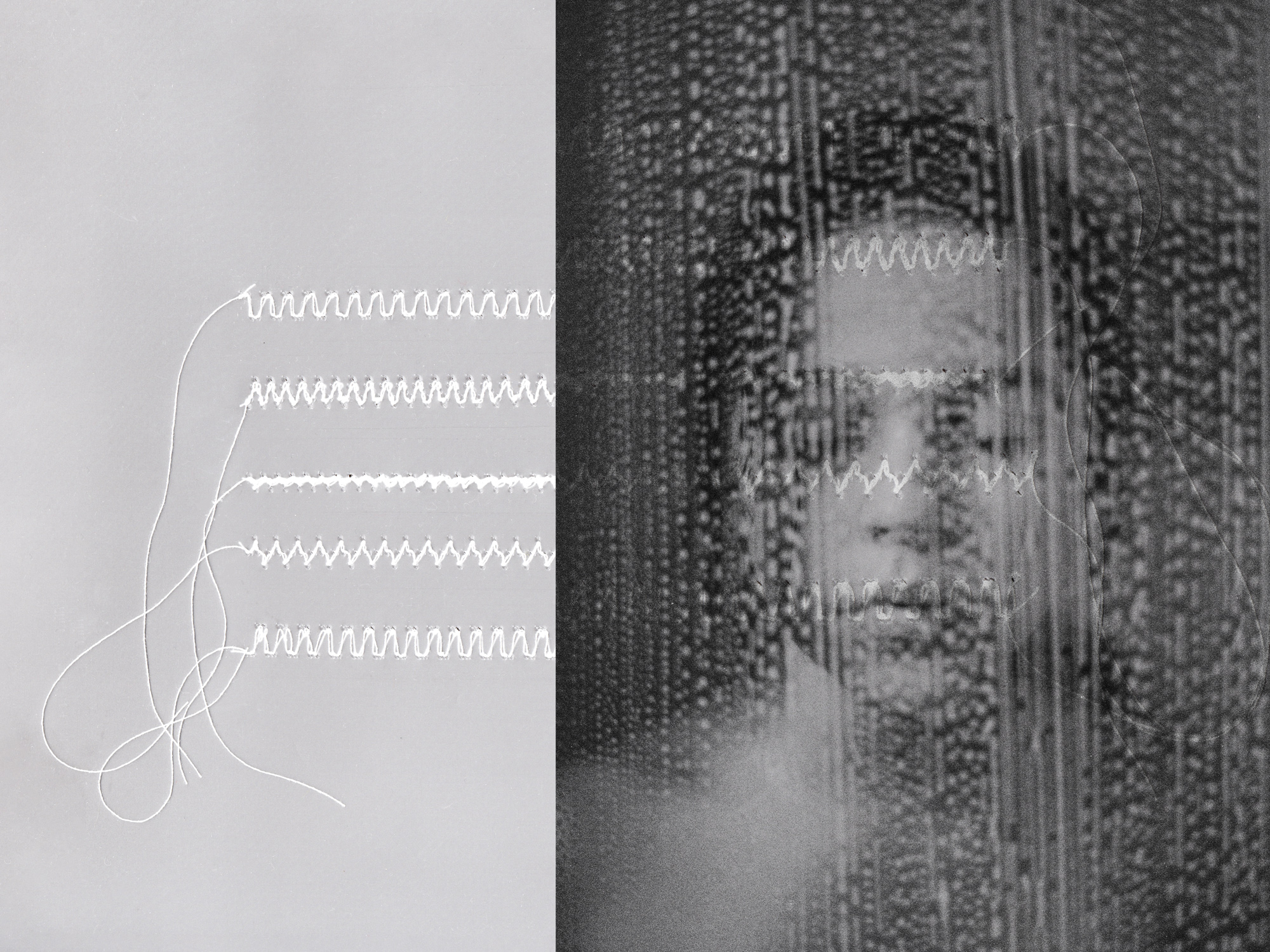 The series of constructed narratives are composed by combining a textile element to represent a hospital vital signs monitor with photography and mixed media techniques, including collage and sculptural work that my children made during their early years, through some of our shared lived experiences.