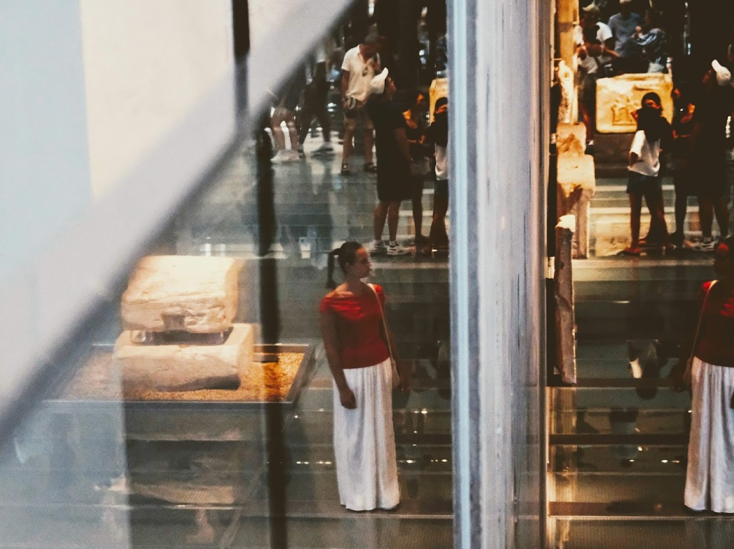 By employing techniques such as candid shots, reflections, and silhouettes, sometimes using unusual perspectives, she creates a visual topography that emphasizes the emotional and psychological impact of art. Evdoxia’s preference for underexposure adds a layer of mystery and intrigue to her images, while her use of film simulation effects and subtle color manipulation enhances the overall aesthetic.