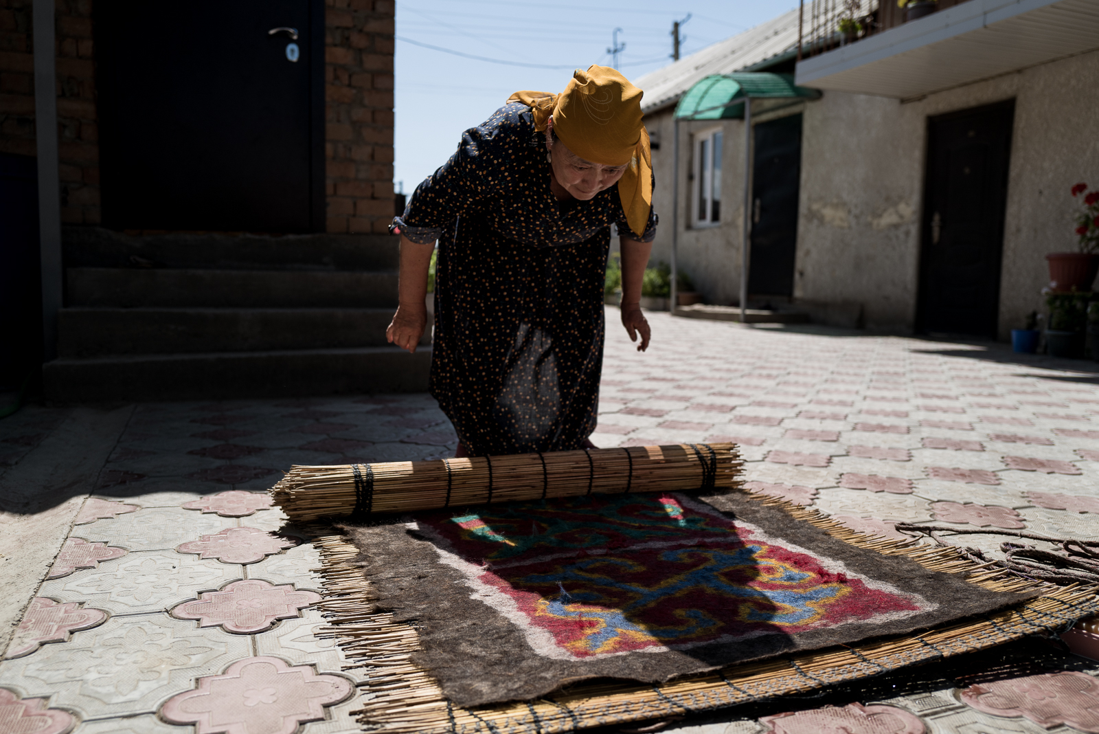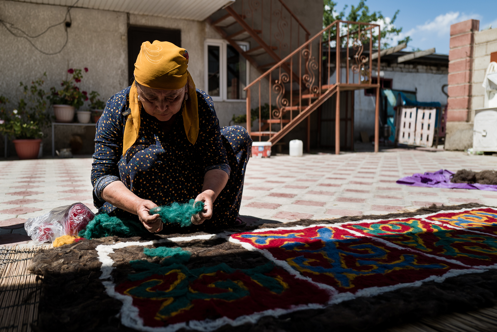 Documentary photography plays a crucial role in preserving not just the visual beauty of these felt carpets but the stories and traditions they represent. Callie’s photographs beautifully capture the essence of Saadagul’s work, offering a glimpse into the world of a traditional craft that is both deeply rooted in Kyrgyz culture and in danger of fading into the past. Through these images, we are reminded of the power of cultural preservation and the importance of passing down these age-old skills to future generations.