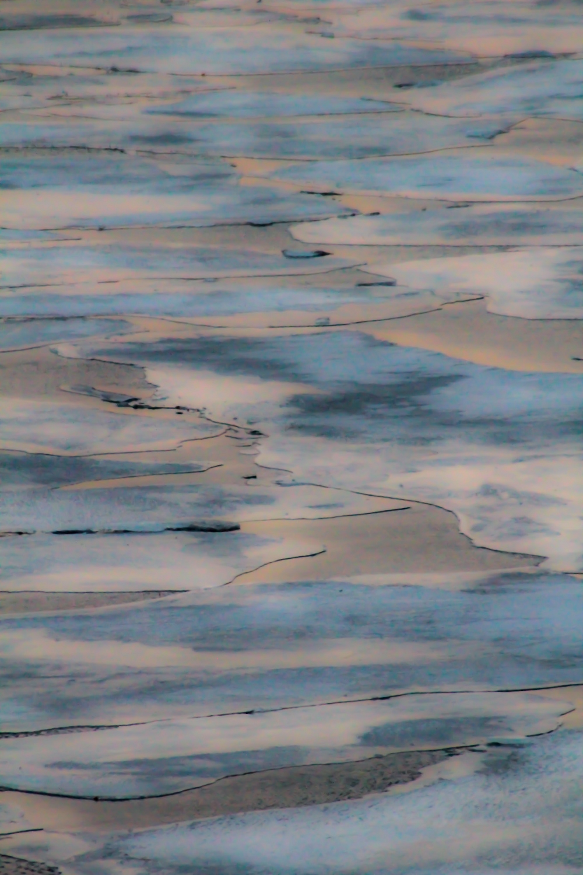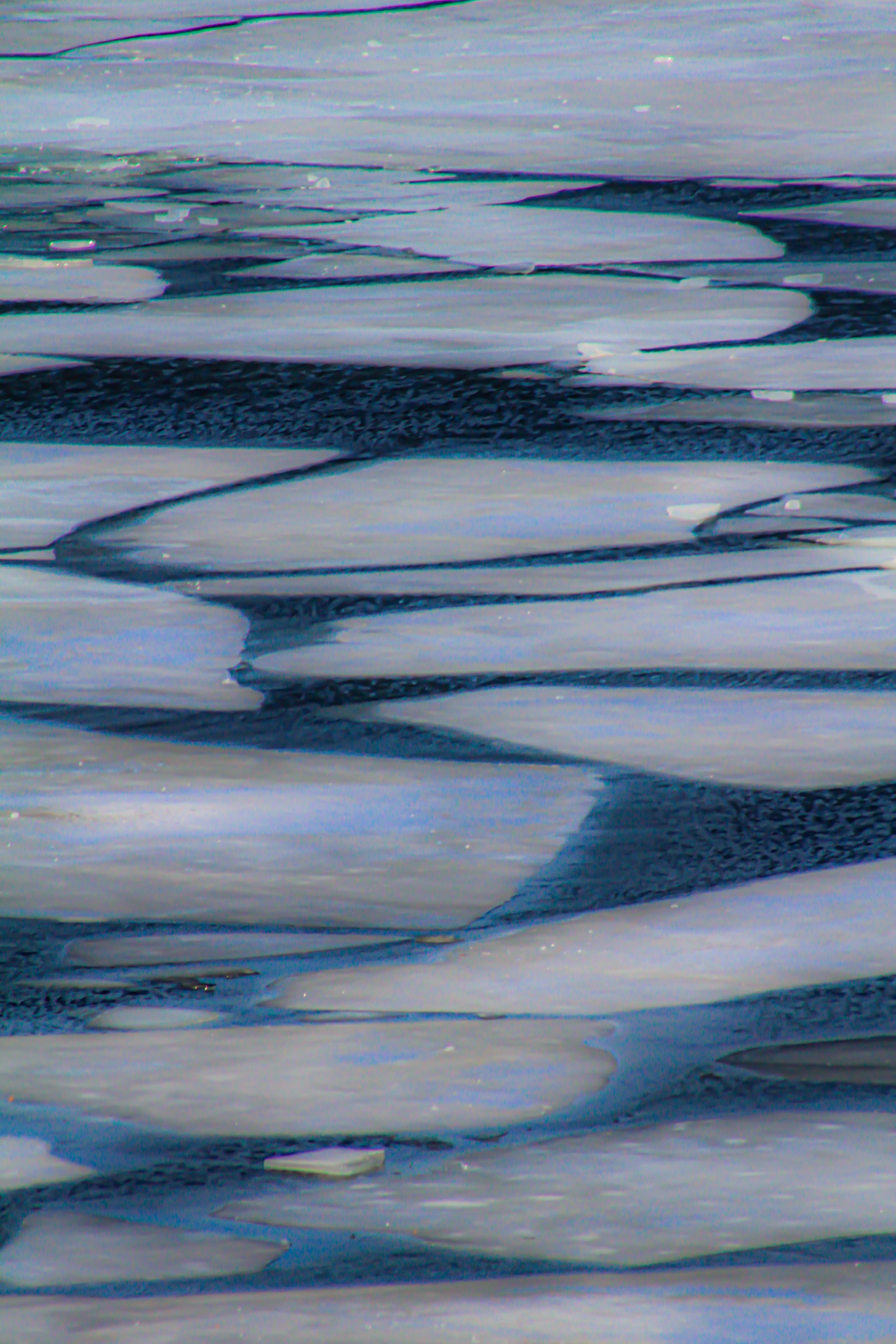 The series on frozen Candlewood Lake captures a natural phenomenon in stunning detail, documenting the cyclical freezing and thawing of the lake’s surface. The process, with its ever-changing textures and colors, unfolded over several months, offering John a unique opportunity to observe nature’s abstract transformations.