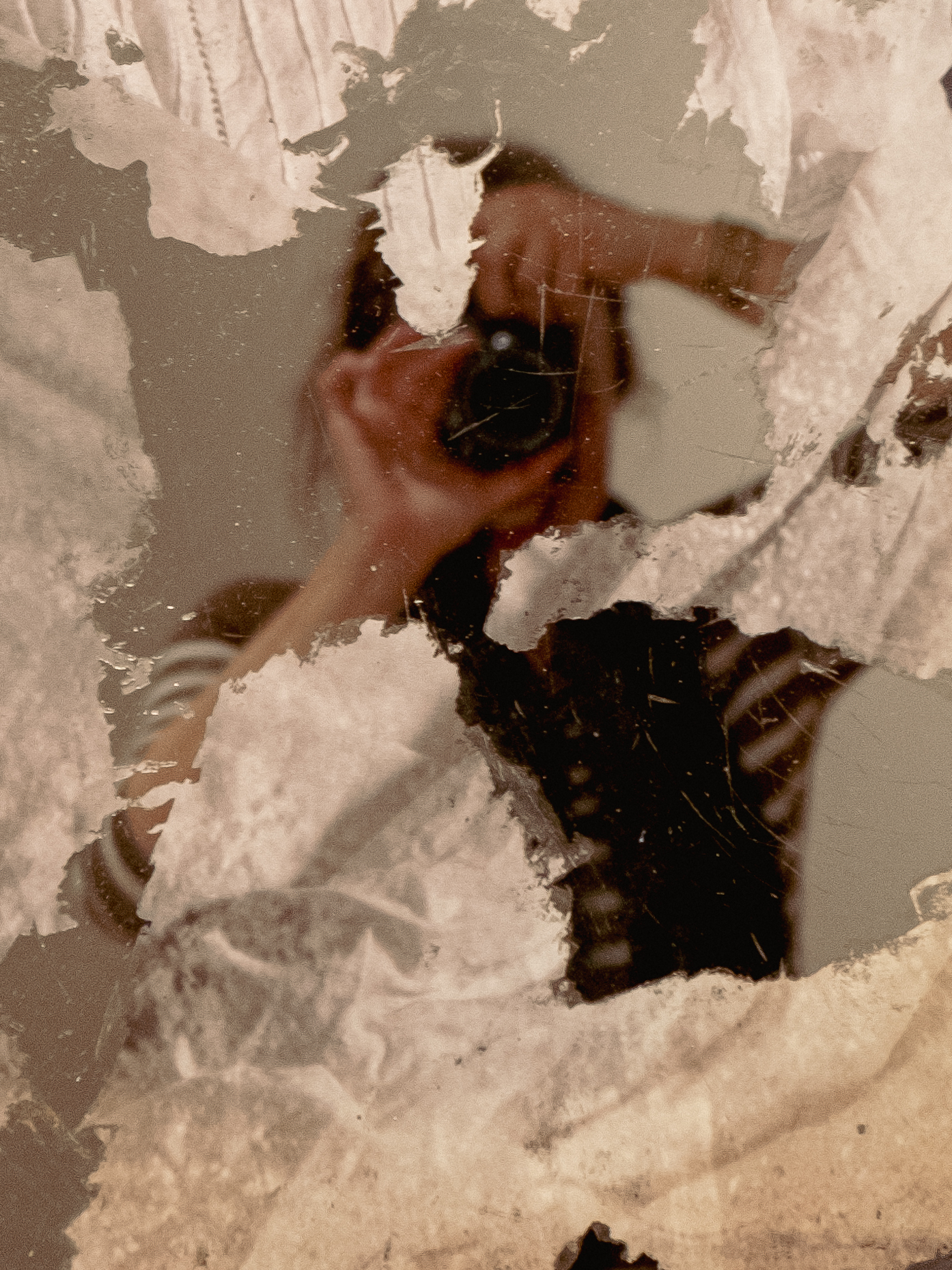 Paola’s photo series explores the interplay between self and environment through reflections captured in mirrors and glass surfaces encountered during her travels. These reflections serve as a visual record of her self-awareness in new and unfamiliar settings. Often captured in locations she hasn’t visited in a long time or is discovering for the first time, these images depict Paola positioning herself within the reflective surface, merging her image with the surrounding space. This visual representation aims to explore how she interacts with the environment and how it influences her sense of self. The reflections symbolize a fusion of identity and place, emphasizing not just her image, but the deeper connection she forms with her surroundings. Paola strives to capture the essence of each moment, encompassing both her presence and the complexity of the space, highlighting their coexistence and its impact on her experience.