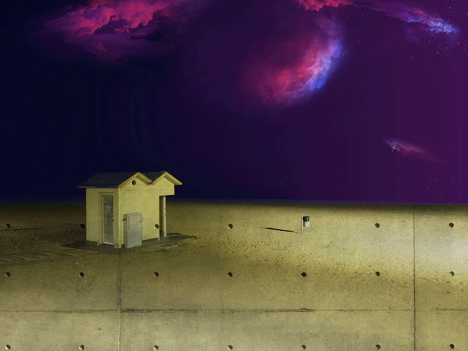 The series is a visual meditation on perception. For example, in Camera con vista, a classical sculpture seems to watch over an ancient stairway glowing with surreal green light, as though guarding a passage into an inner world.
