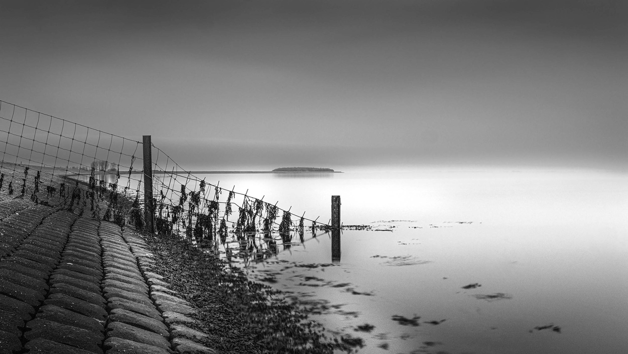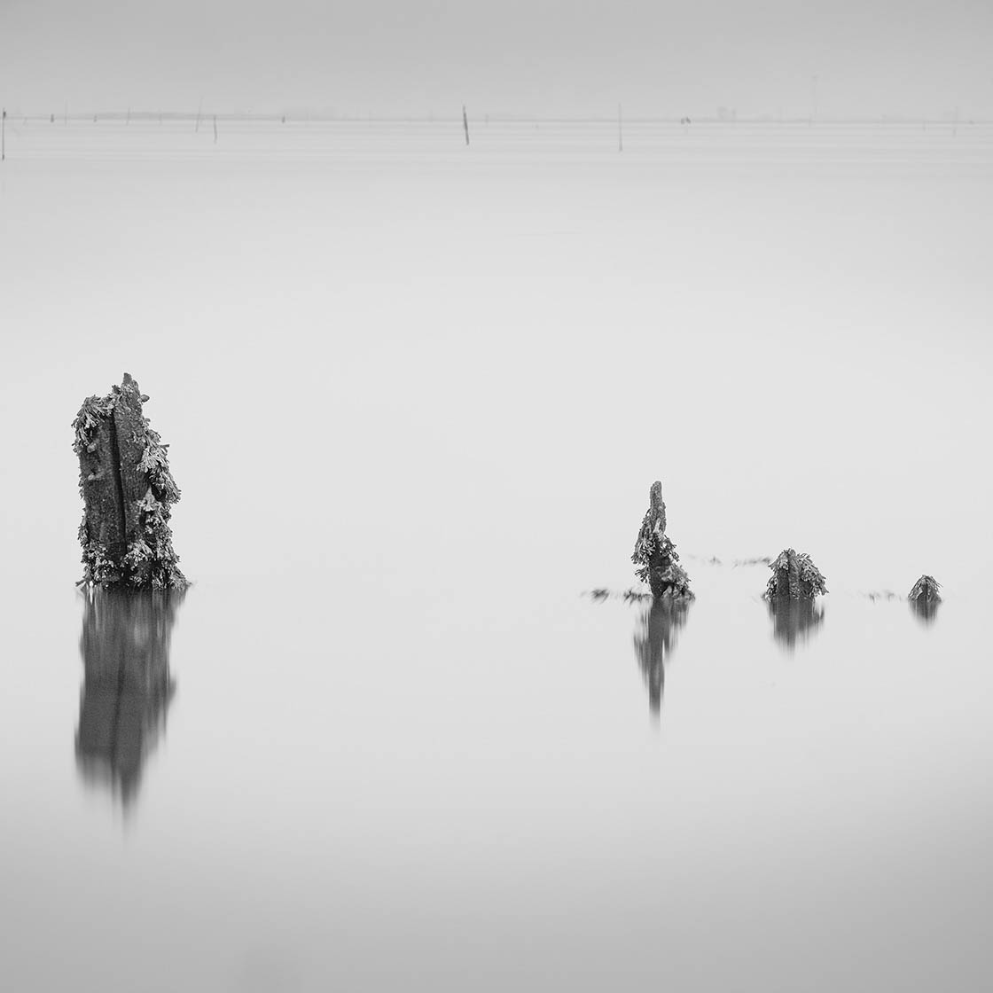 The photographer invites us into a visual meditation: landscapes blurred by long exposure, horizons softened by water and light, and figures that feel more like thoughts than people.