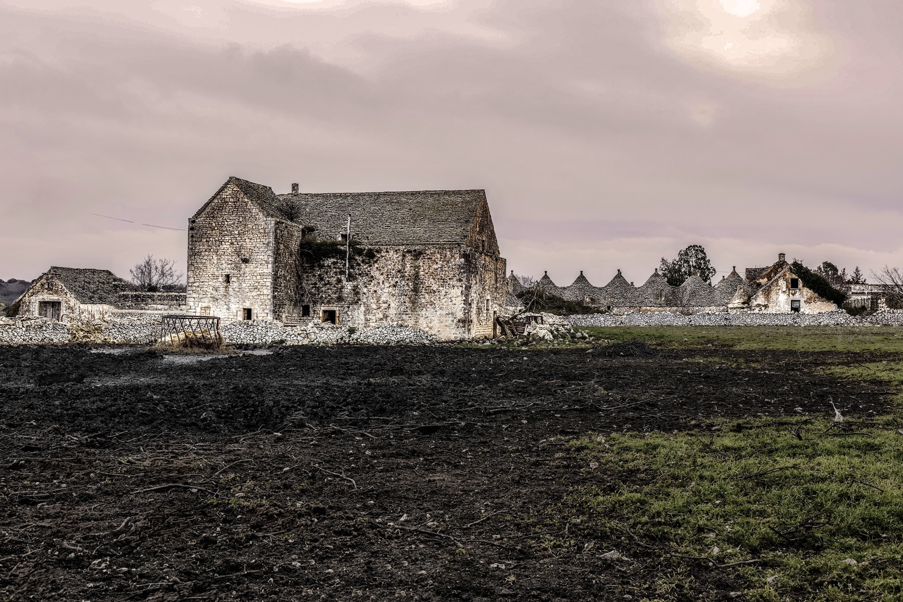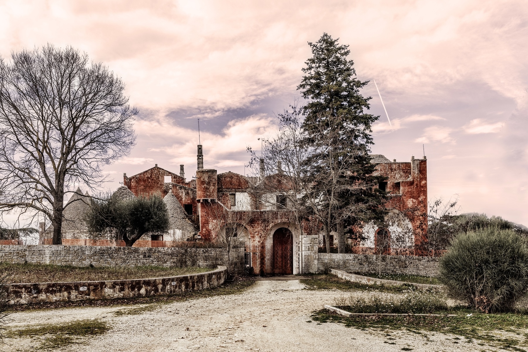 The masserie, largely dating from the seventeenth and eighteenth centuries, introduce a different architectural language. Isolated farm complexes characterized by simple geometries, imposing volumes, and stark surfaces, they punctuate the landscape with a severe clarity. These buildings are frequently uninhabited, bearing silent witness to demographic shifts, changing professions, and the gradual abandonment of rural life.