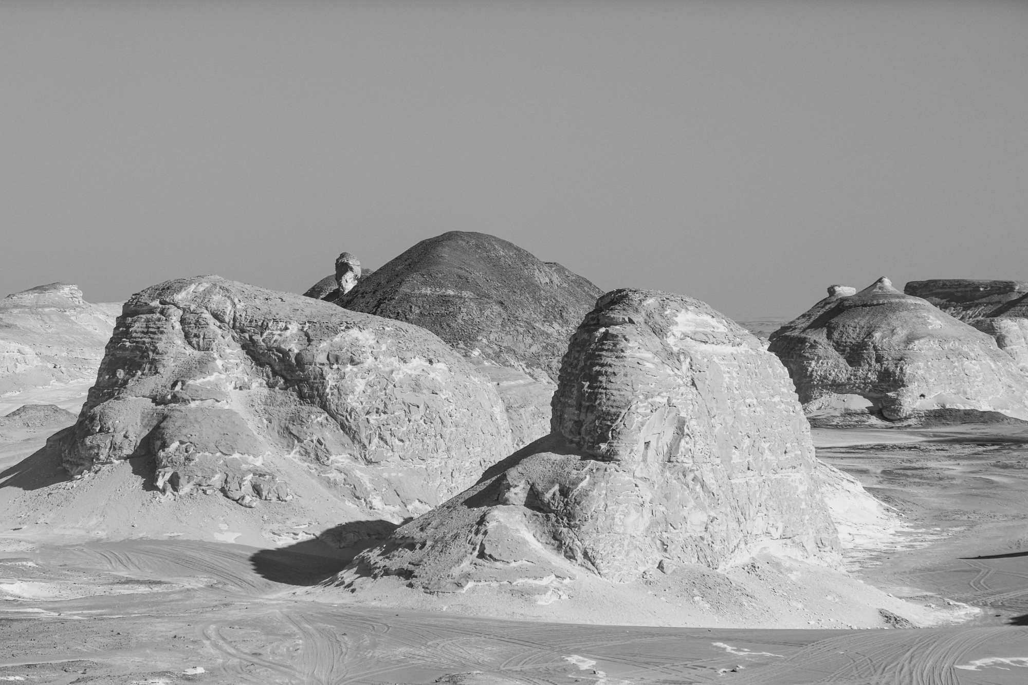 The series was created in the White Desert, also known as Sahara el Beyda, located within the Farafra Depression in Egypt’s Western Desert, approximately 500 kilometers southwest of Cairo. This landscape, declared a protected area in 2002, extends over more than 3,000 square kilometers and is composed primarily of chalk and white limestone — remnants of ancient marine sediments deposited during the Cretaceous period, when the region lay beneath a shallow sea.