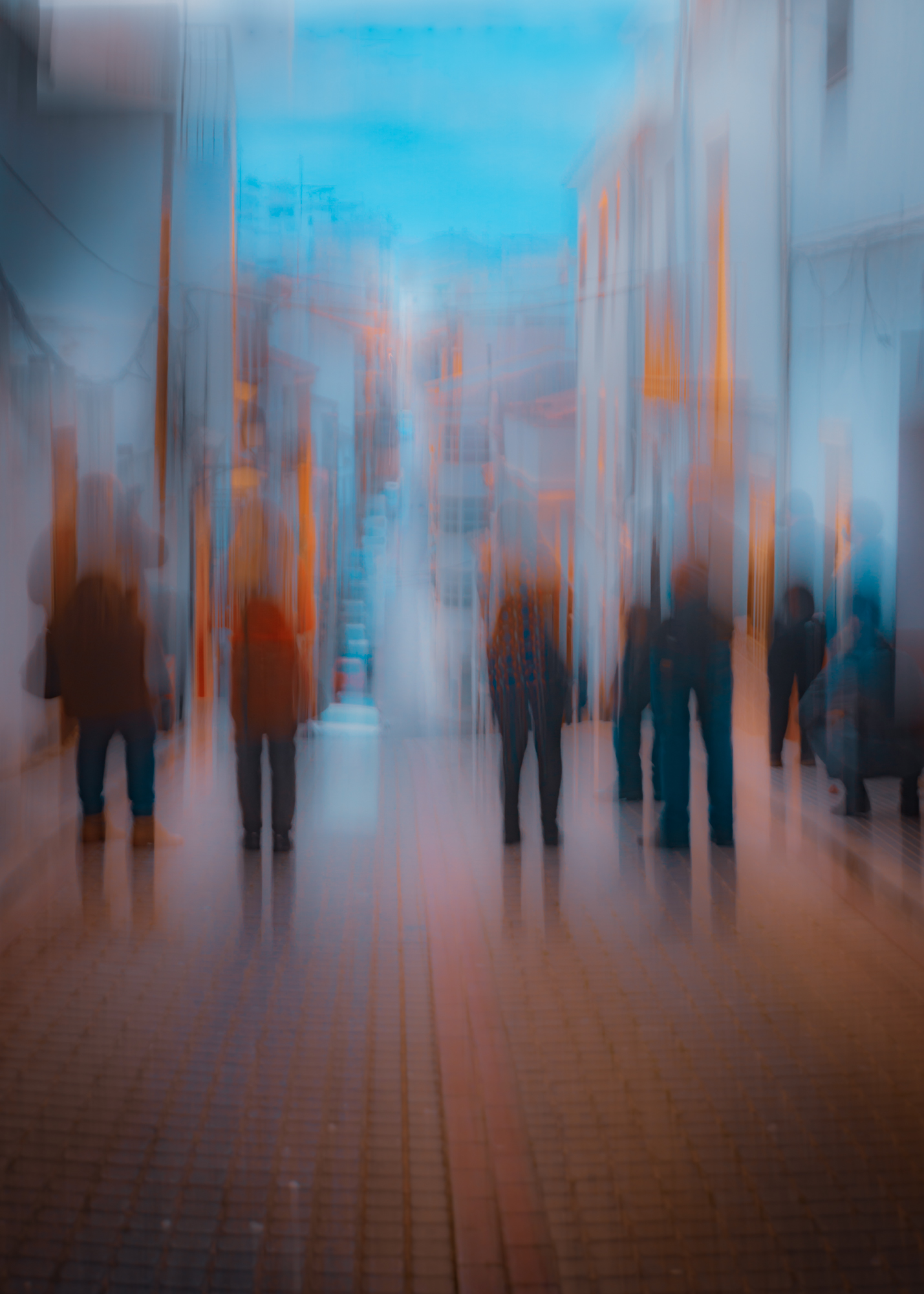 // Héctor Morón is a Spain-based fine art photographer working with long exposure and intentional camera movement (ICM). Over recent years, he has developed a distinct photographic language in which reality is not recorded but translated. Streets, buildings, light, and human figures are treated as unstable elements—reshaped through motion, duration, and rhythm into images that hover between recognition and abstraction.