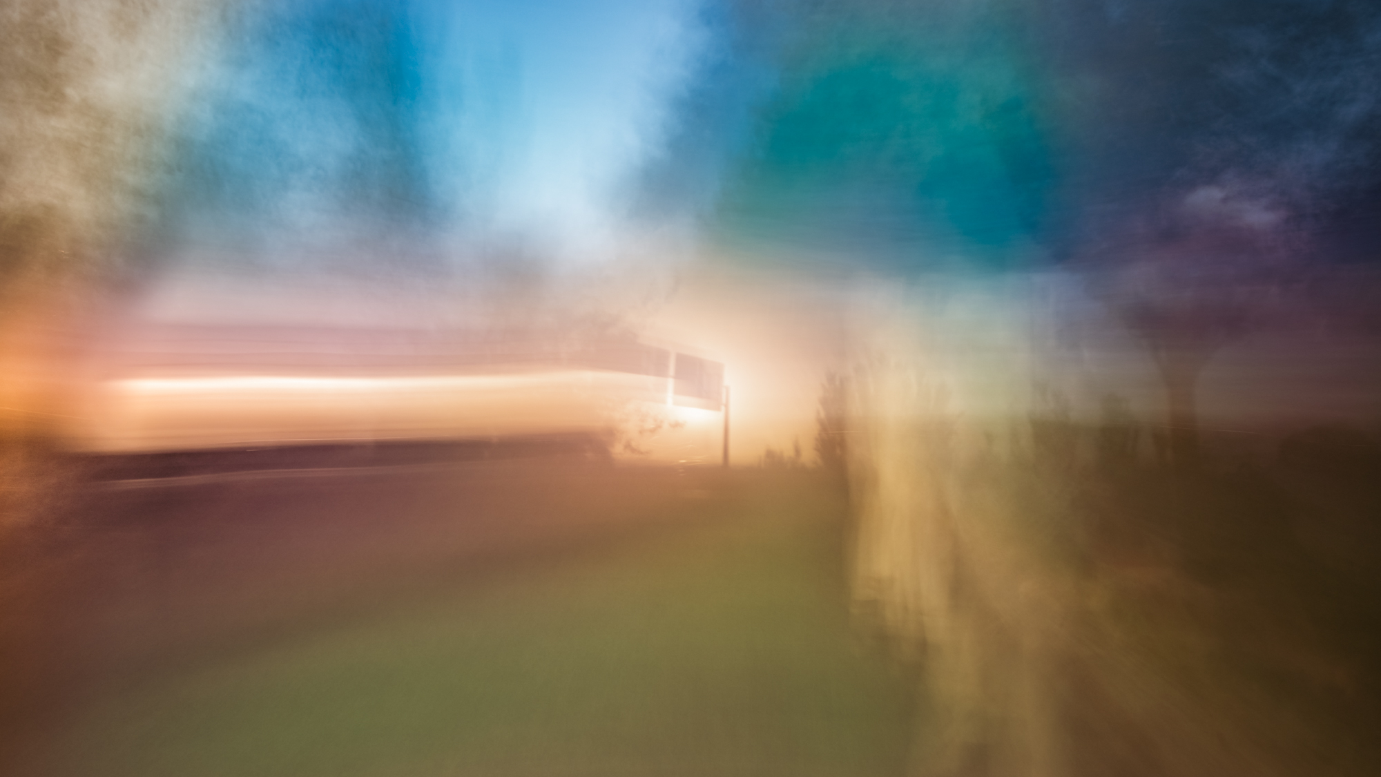 Technically, every image begins as an optically captured photograph of a real scene. Morón works handheld, using long exposure combined with deliberate ICM techniques such as vertical sweeps, micro-rotations, and lateral drift. He produces multiple takes on location, later selecting those frames where form remains legible but displaced. Post-processing is strictly photographic, limited to tonal balance, contrast, and color refinement. No AI generation, painting, or drawing is involved.