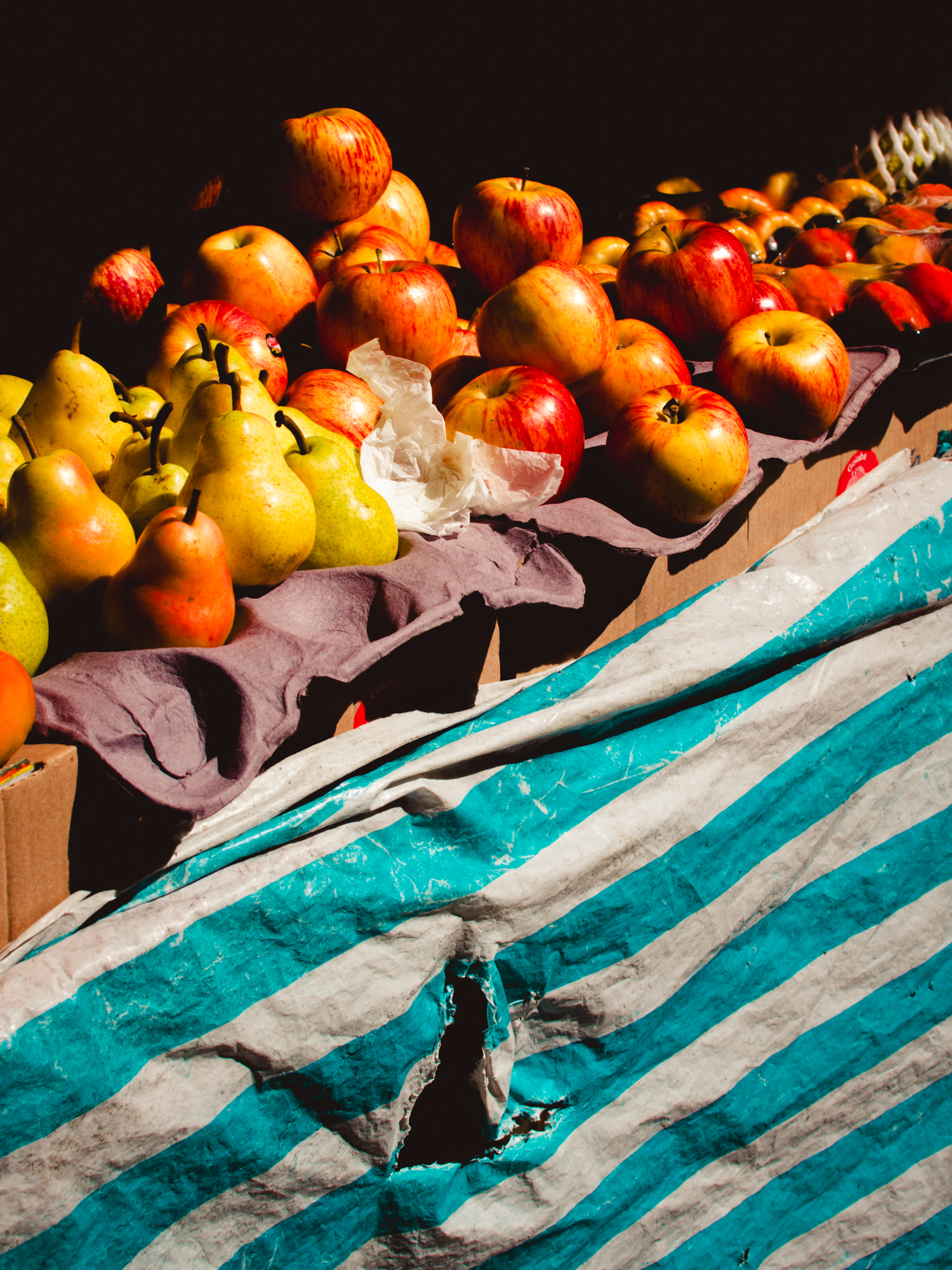 Colors of a Grey City does not try to reconstruct the city or romanticize it. It pays attention to what escapes the dominant narrative — the details that resist being absorbed into uniformity. Tarps, fruits, clothing, light, blue sky. Moments that exist briefly, but insist on being seen.